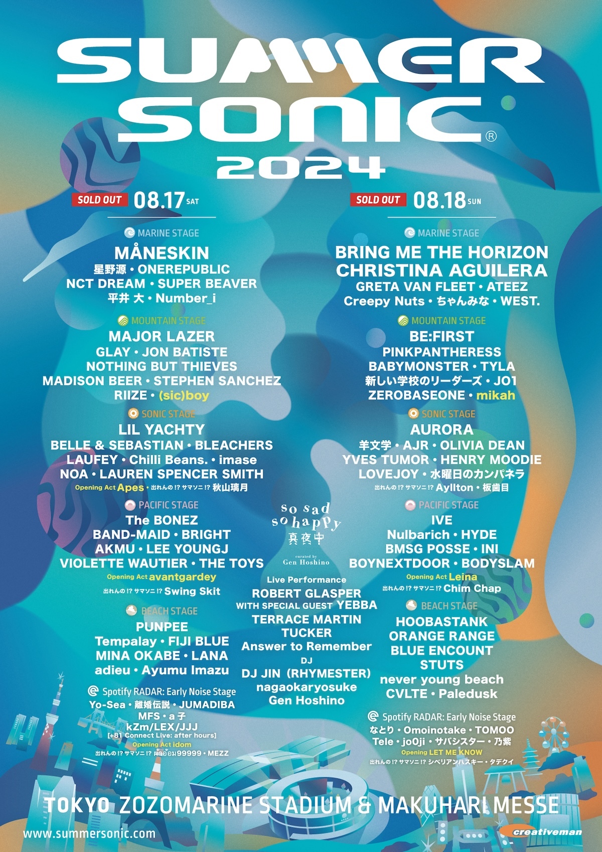 2024年8月17日(土)・18日(日)にZOZOマリンスタジアム&幕張メッセ、万博記念公園にて開催される『SUMMER SONIC 2024』。サマソニ東京のOpening Actを含めた追加国内アーティストが発表され、今回でサマソニ東京・大阪共に全出演者が出揃った。