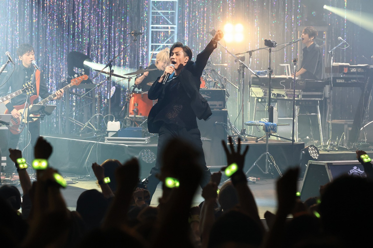 ORIGINAL LOVEの「接吻」からスタートし、玉置浩二の「メロディー」、藤井フミヤの「Another Orion」、THE BLUE HEARTSの「青空」、斉藤和義の「歌うたいのバラッド」など、名曲の数々をバンドの演奏をバックに、次々と披露。アンコールでは、自身の楽曲も披露した。