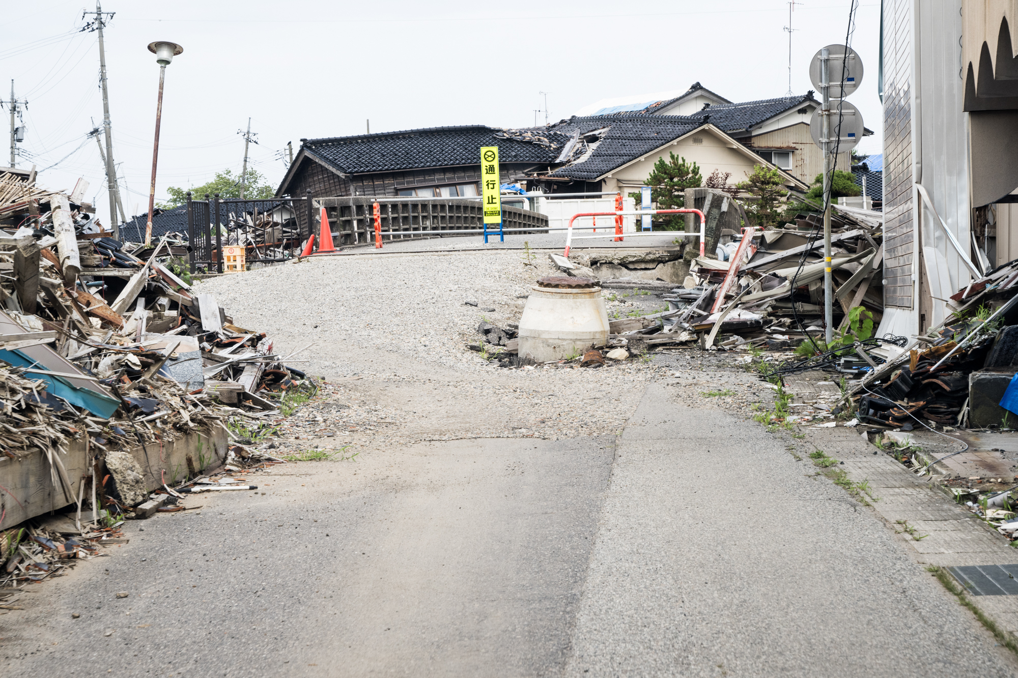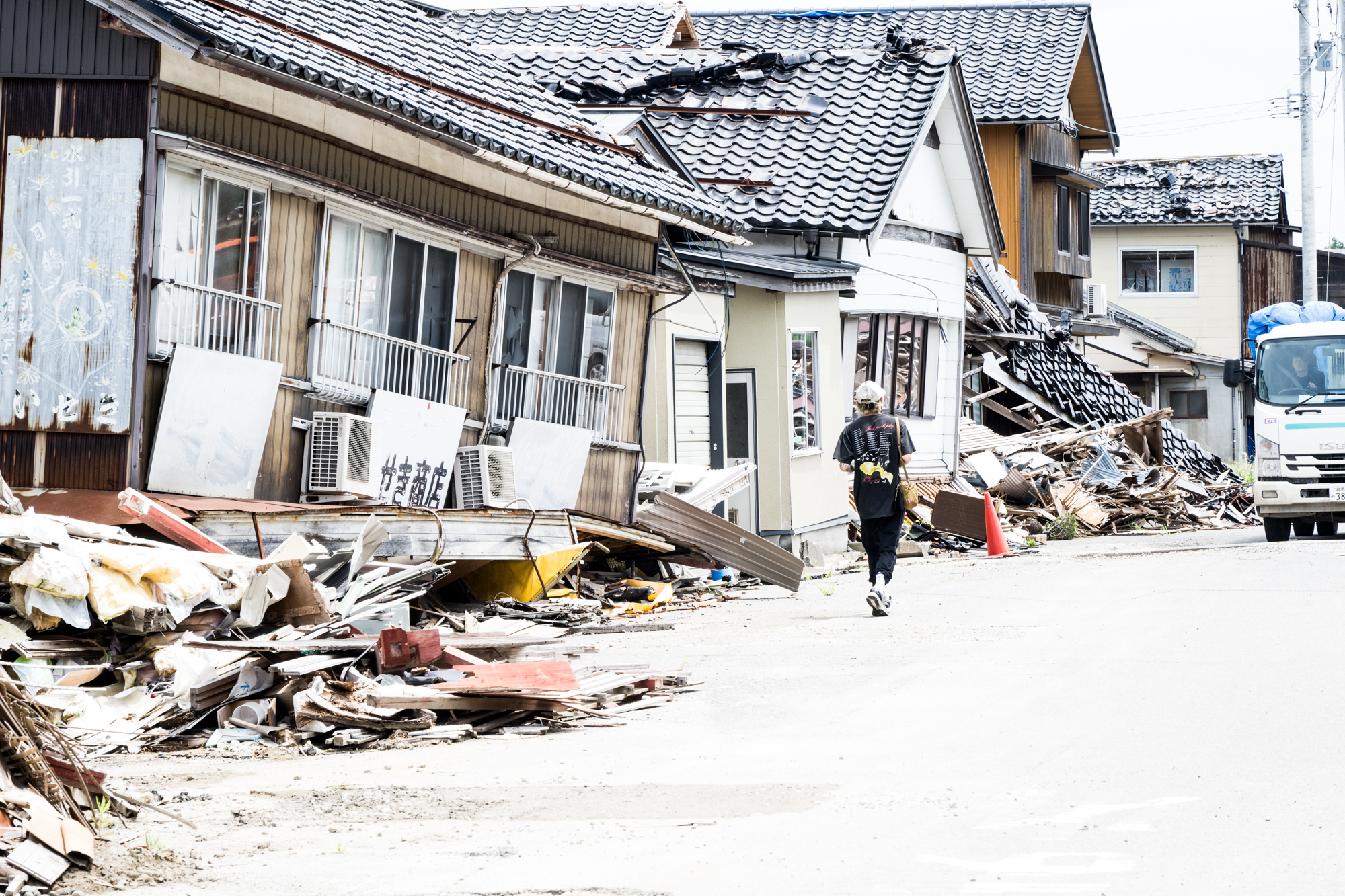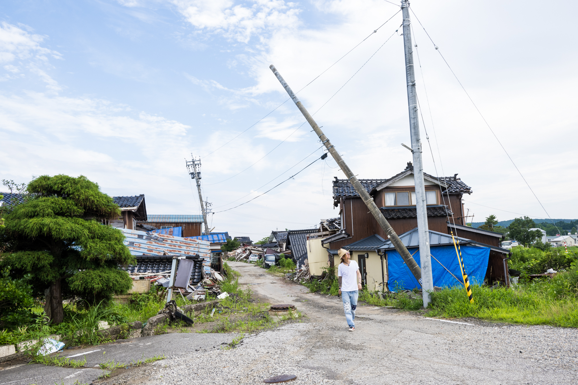 「ひるとよる」による能登での炊き出しは今回で2度目。店長の松屋綱善さんは「何かしたい」と思い、2月に自らボランティアに出向いたという。そして清春が福岡の店舗で食事をしたこと、3月の能登来訪のSNSの投稿を見て「今度は一緒に行かせてください」と清春に連絡、今回の活動につながった。炎天下の炊事場で、汗だくでラーメンを提供するのも想いがあるから。松屋氏は「街並みはあまり変わっていないけど、避難所の人たちの表情は少し明るくなったんじゃないかな。前回は大変そうでしたもんね」と話していた。ゆっくりと進む、建物の解体や瓦礫の撤去。外から見ると変わらないように見えても、珠洲で暮らす人々にとっては少しずつ変化している。それが希望なのだ。