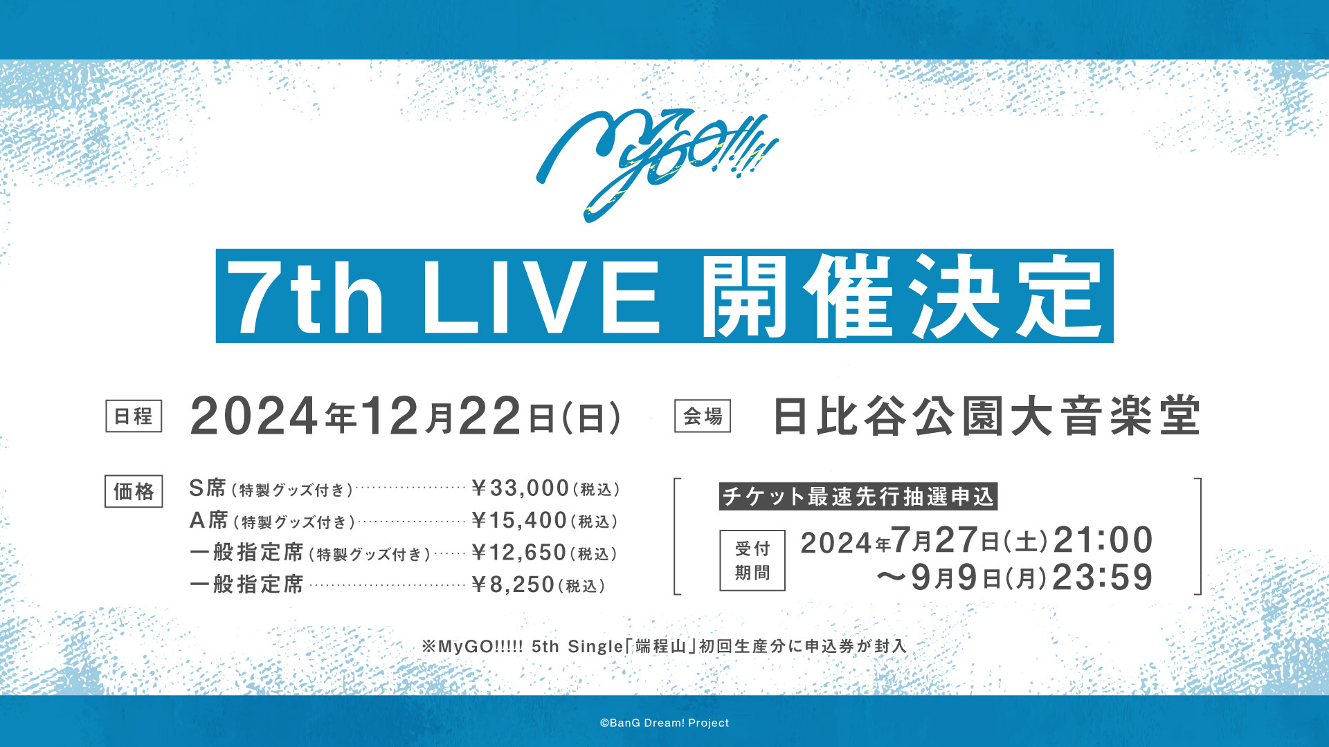 そしてここでお知らせタイム。まずは本日ライブ初公開となった楽曲「端程山」のMVがYouTubeでプレミア公開されることが語られると、続いて『MyGO!!!!! 7th LIVE』が日比谷公園大音楽堂にて発表されることが解禁、会場を大いに沸かせた。さらに劇場版『BanG Dream! It’s MyGO!!!!!』前編の予告編も公開され、今後のMyGO!!!!!への期待度をさらなるものにした。