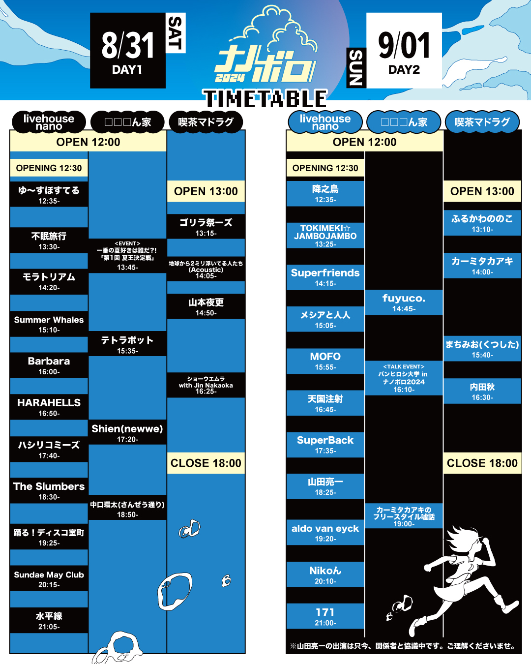 『ナノボロ2024』では、初日8月31日(土)のトリを水平線が担当。2日目9月1日(日)は、171がトリを飾る。