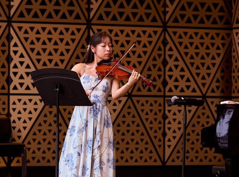 ヴァイオリニスト、島谷美賀子。11歳でイギリスに渡り、イギリス最古の音楽学校・パーセル・スクール、そして英国王立音楽院で学んでいる。昨年完全帰国を果たして以来、数々のコンサートやコンクールでの活躍を続けている。