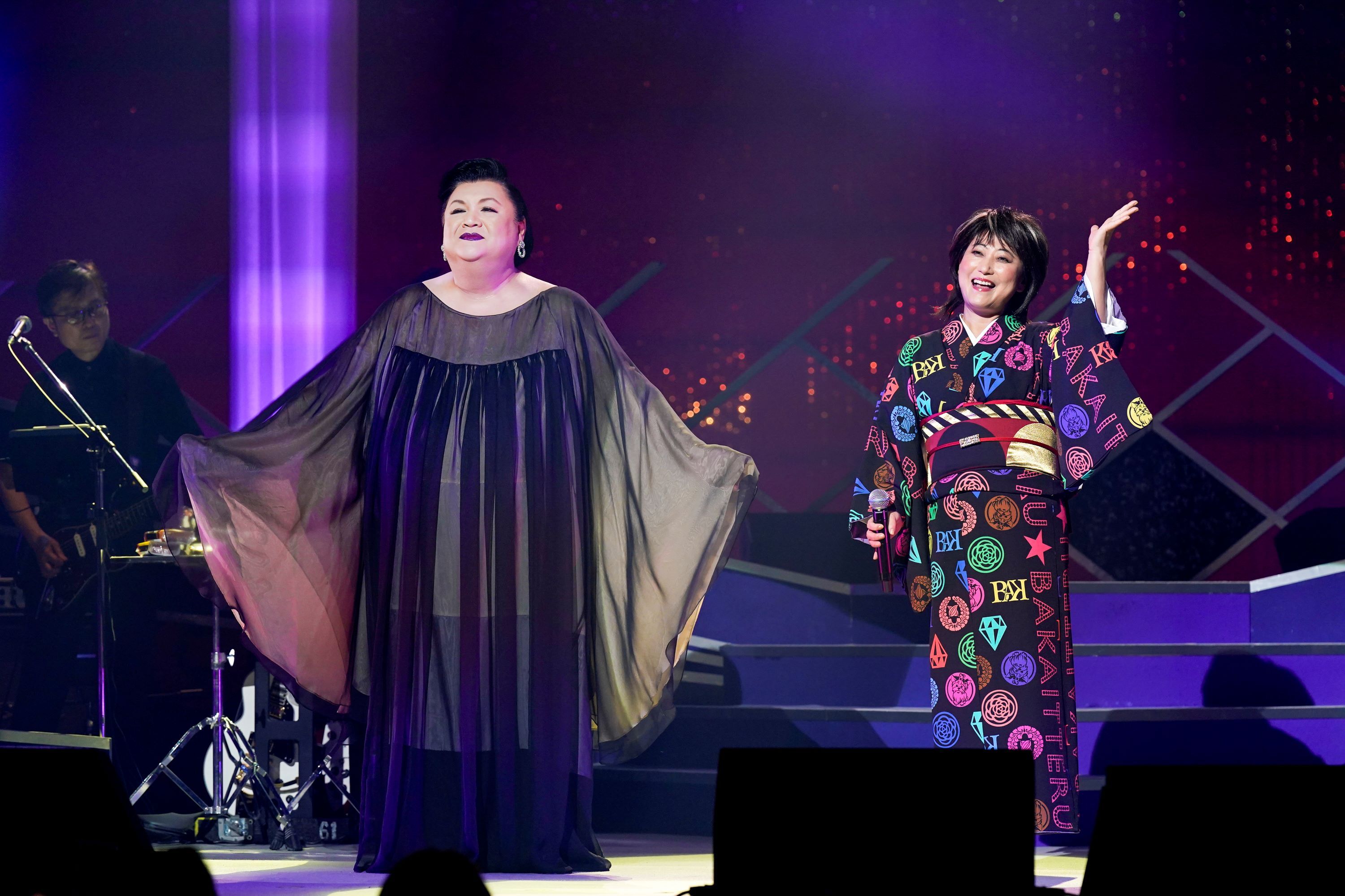 水谷千重子は、“かつては『北陸のひばり』と呼ばれ、二葉菖仁の秘蔵っ子”演歌歌手。先日、“芸能生活50年”にして“二葉菖仁音楽出版”から、創立115年目を迎えた演歌の老舗・コロムビアレコードに移籍を発表したばかりだという。8月2日(金)には、コロムビアレコードからの第1弾リリース作品として、盟友・浜ローズ(マツコ・デラックス)との“幻のデュエット曲”「まそおの月」と、水谷の新境地となる歌謡曲「あまえたって駄目さ」を配信した。「まそおの月」は「約30年前のバブル絶頂期にリリースが決まっていたものの、水谷千重子と浜ローズが距離を置くきっかけとなったあの“赤坂の乱”の影響でリリースが中止。幻のデュエット曲となっていた」という楽曲。2021年に水谷千重子の明治座公演にてふたりが共演を果たしたことにより再び動き出し、3年の月日を経てのリリースとなった。水谷は、今回の『水谷千重子の宴ジョインコンサート』での浜ローズとの3年ぶりの競演で、「まそおの月」を歌唱している。