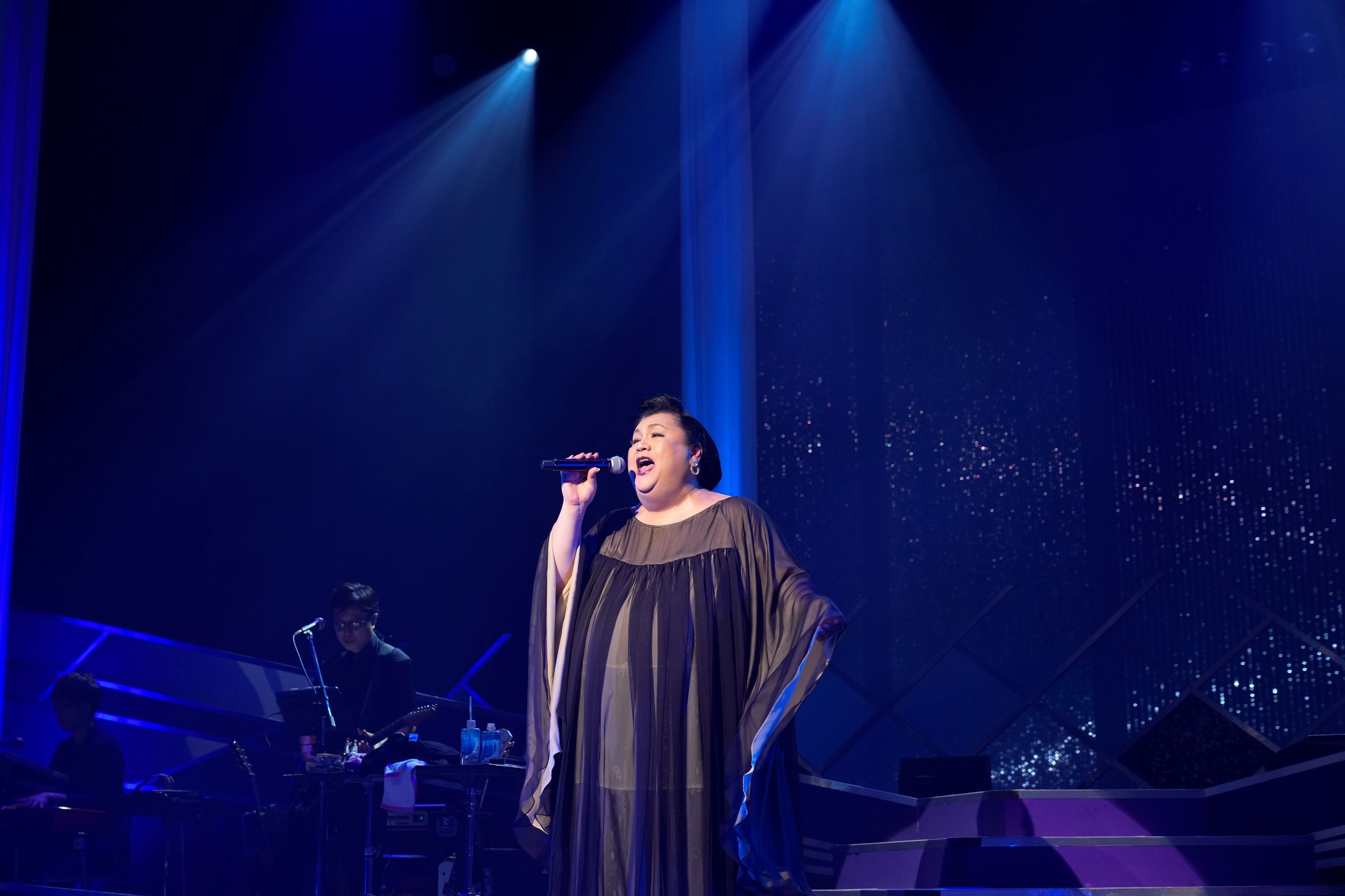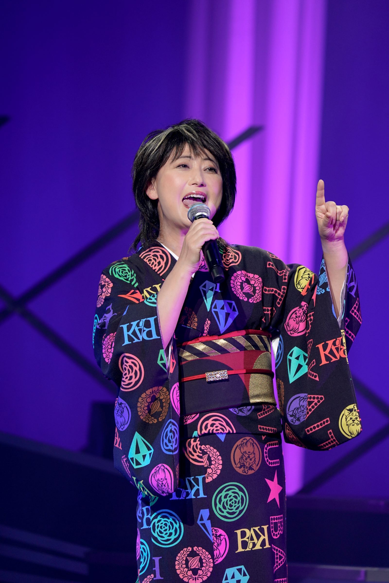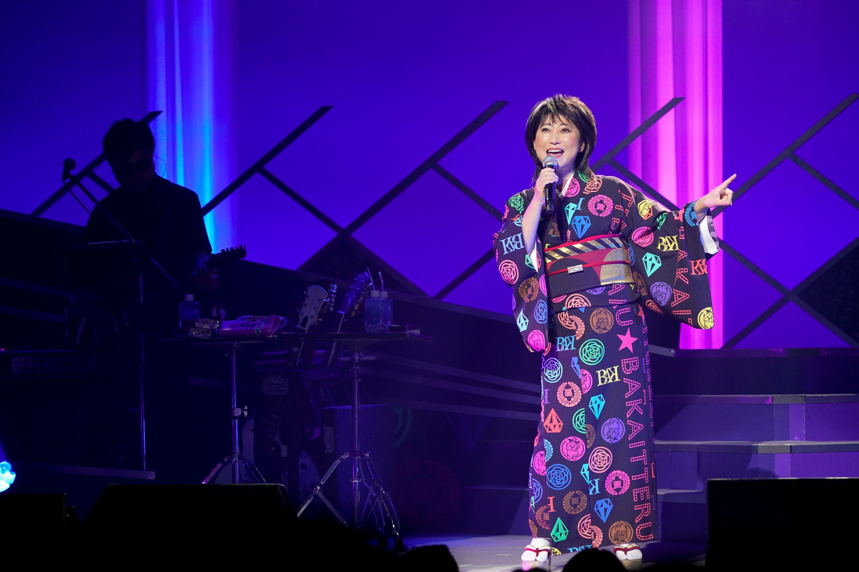 その後、水谷は新曲について、「さて、次はなんと昨日配信が始まった『あまえたって駄目さ』を披露させていただきたいと思います。この曲はすごく強い女性の曲で、あーだこーだ裏で文句言うんだったらそこで立ち向かって、世の中ちゃんと生きていこうよというメッセージが込められた曲でございます」と紹介し、配信したばかりの同曲を歌唱。「ちょっとかっこいい曲調でしょ。二葉慶太郎先生にちょっと強い女性の曲を書いてくださいとお願いしたら、とてもイメージ通りの曲ができたんで、大事に歌っていきたいと思います」と話した。さらに、ダンサーを従えて、KUWATA BANDの「スキップビート」を歌い、ステージの前半が終了。さだまさしとのジョインをエンジョイした後の中盤、「昨日、新曲がリリースされて、配信が始まったその歌を歌いたいと思いますから、呼び込みたいと思います。浜ローズちゃんどうぞー」と“マツコ・デラックス似”の浜ローズを呼び込むと、浜が黒のシルクの衣装でステージに登場した。