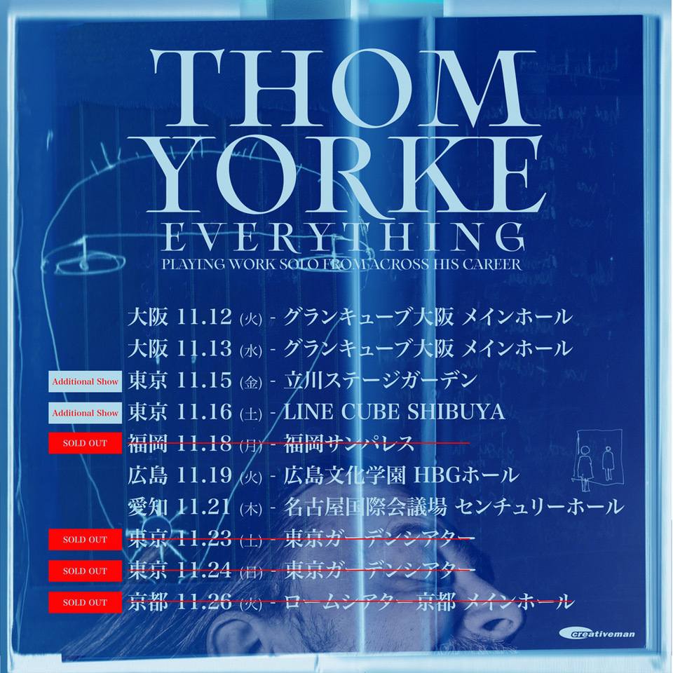 トム・ヨークの初となるソロツアー・東京公演完売につき、追加公演が決定した。