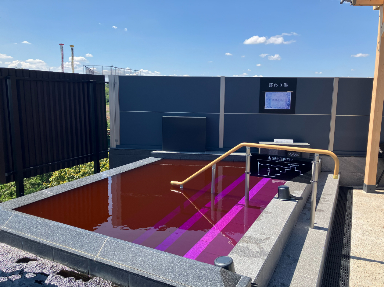 「純烈の湯」は、9月2日(月)から8日(日)までは酒井一圭の紫色とラベンダー、9月9日(月)から15日(日)までは白川裕二郎の赤色とローズ、9月16日(月)から22日(日)までは後上翔太の緑色とマスカット、9月23日(月)から29日(月)までは岩永洋昭のオレンジ色とオレンジ、各メンバーのカラーと香りに露天風呂が変化(※香りは変更の場合あり/9月12日は休館)する。