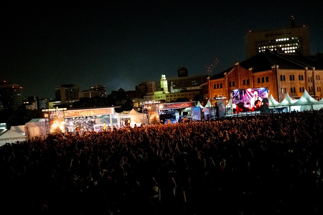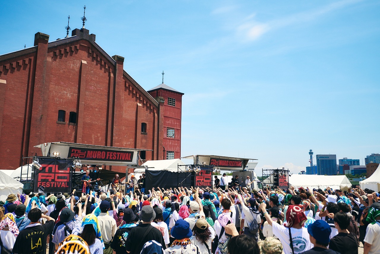 『ムロフェス』DAY 2も、朝の時点で気温30度超え。前日とほぼ変わらない快晴の中、多くの音楽ファンが横浜赤レンガ倉庫に詰めかけ、またしてもホットな1日になる予感しかない。