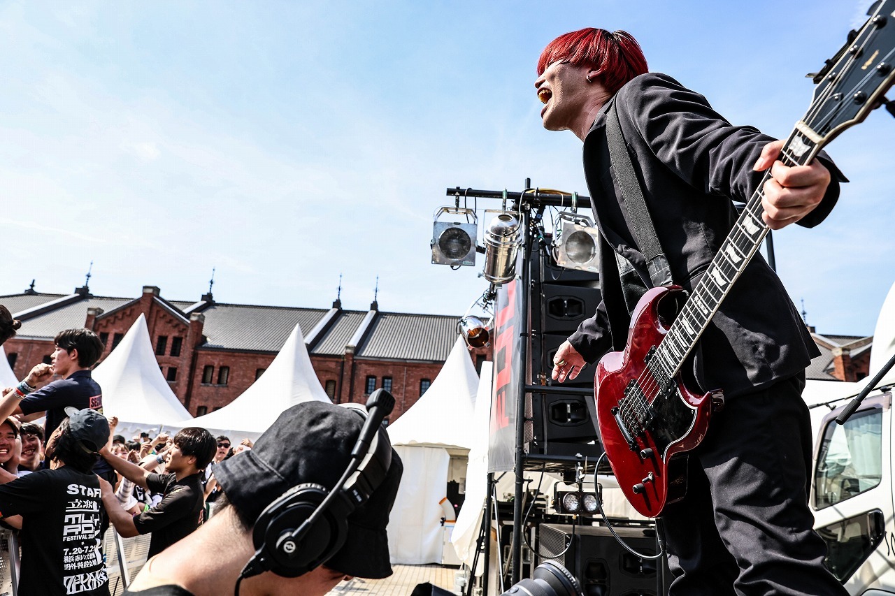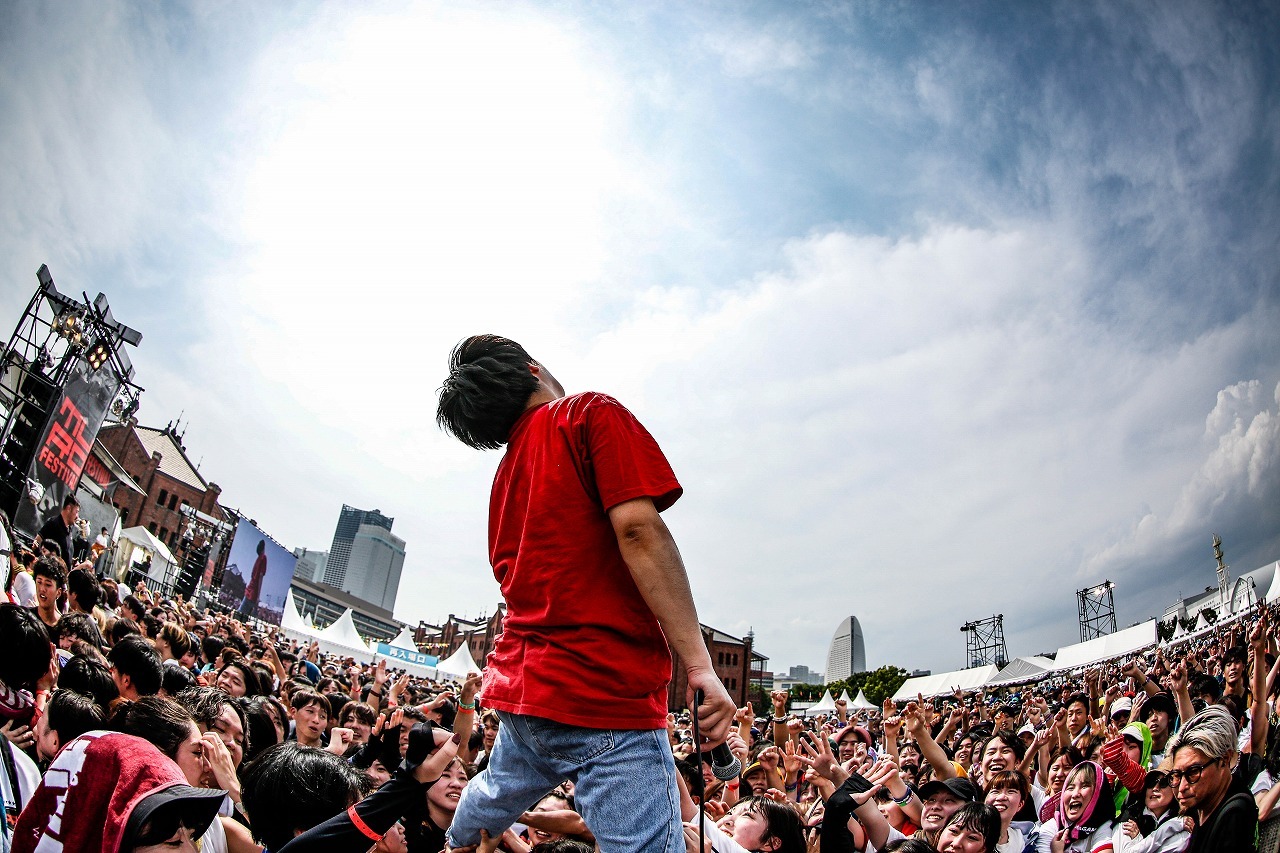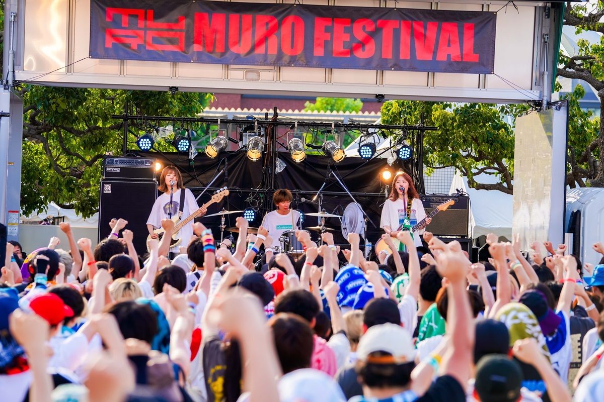 全アクトの口火を切った海ステージのシンガーズハイが、爽やかなギターロックサウンドとともに、内山ショートのハイトーンボイスを青空に響きわたらせていく。芝生ステージでは、オーディション『MURO FESTIVAL×Eggs presents「ムロエッグ」』を勝ち抜いた弁天ランドが躍動(ボーカルのサトウケイがフィールドを走り回る!)。赤レンガステージでは、the quiet roomが祝祭感に満ちた「パレードは終わりさ」で、朝から熱いシンガロングを巻き起こしている。こうして各トップバッターだけを取っても、フレッシュなニューカマーとの出会いがあったり、グイグイと上り調子なバンドが観られたり、ライブハウスシーンの今をリアルに確認できるのが『ムロフェス』の醍醐味と言えよう。