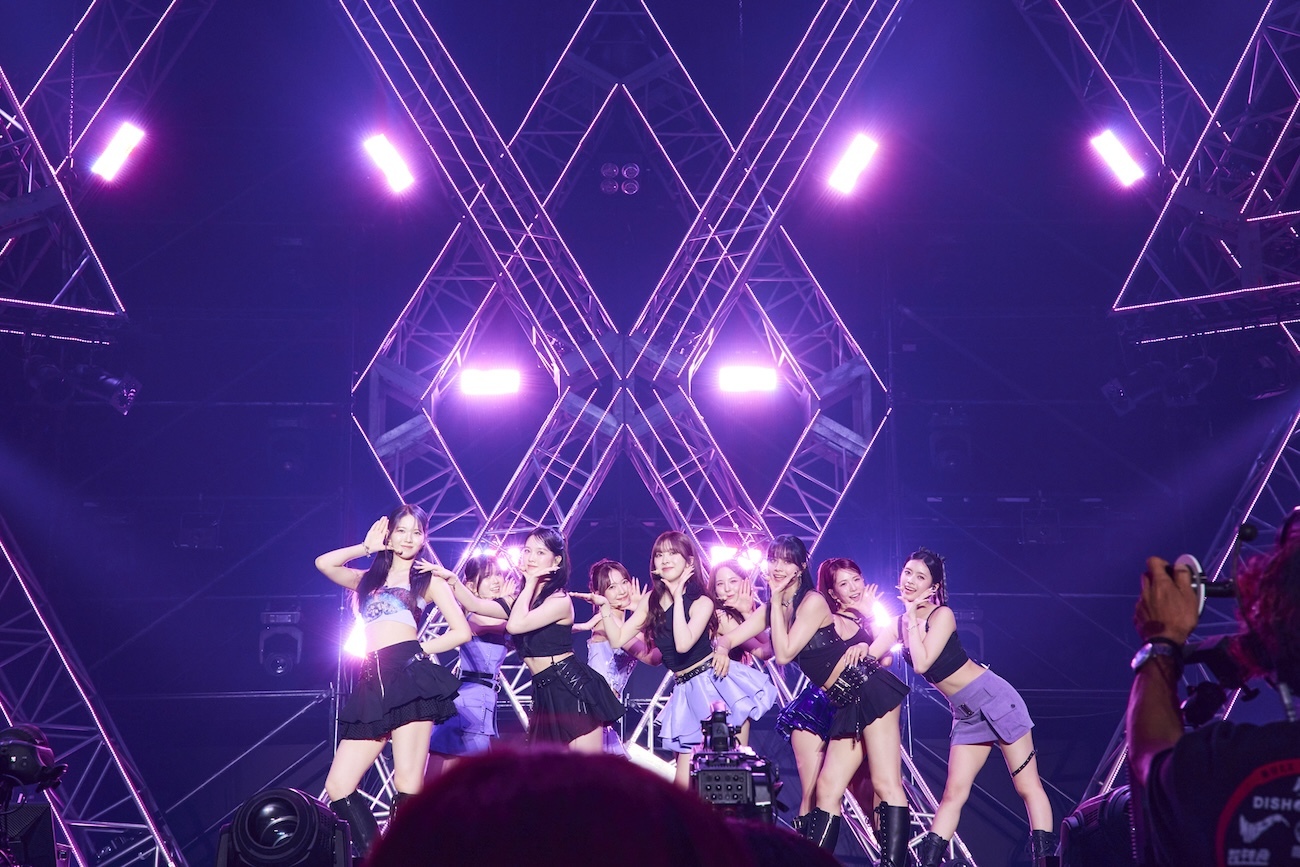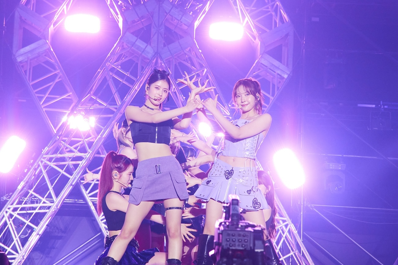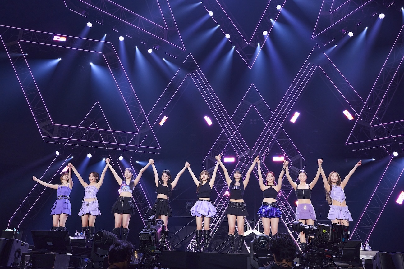 ここまでNiziUの曲は日本語/英語詞の曲が歌われ、一緒に歌えるようにとスクリーンには歌詞も映し出されていた。続いての「HEARTRIS」は彼女たちの韓国デビュー・シングルに収められた韓国語曲。セットリストの中では唯一、歌詞が出なかったが、ファンは韓国語詞もしっかり覚えているようで、多くの人が歌っていた。RIOは「去年(2023)の『バスリズム LIVE』で韓国語バージョンを披露したのが初めてで、また今回も披露できて本当に嬉しいです!」と話す。『バスリズム LIVE』と、この「HEARTRIS」にはメンバーにも特別な想いがあったよう。「今日WithU(NiziUファンの呼称)の皆さんと、初めてNizuUを見てくださる皆さんと一緒に過ごせたことに、とても嬉しくて途中ちょっとウルっときました。次の曲で最後です。皆さん知ってたら腕回してください!」と紹介したのは、NiziUライブの鉄板ナンバー「Make you happy」。気がつけばあっという間の40分。もっともっと観たいと思わせる見事なパフォーマンスであった。