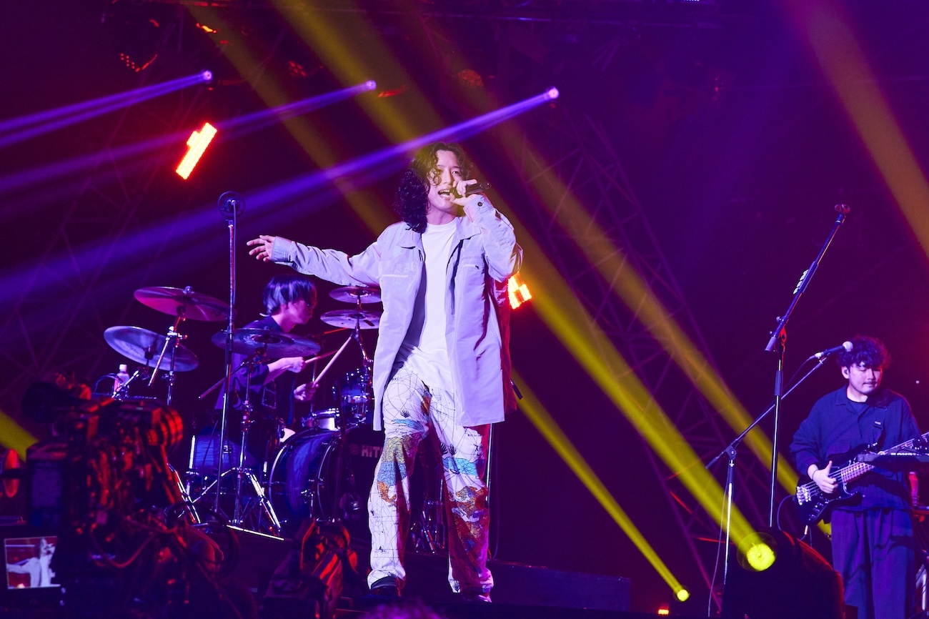 つんざくようなギターのカッティングに導かれスタンドマイクで歌い出す「Rapport」で、キタニは美しいファルセットボイスも披露。「みなさんに会えて良かった!また会えるのを楽しみにしています!」とラストで歌ったのは、人気アニメ『呪術廻戦』のオープニングとなった「青のすみか」。この日集まった観客の殆どが耳にしたことがある楽曲とあって、サビでは全員がシンガロング。場内のボルテージも最高潮に達し「どうもありがとう!また会いましょう!」と35分ステージを圧倒的なスピードで完走した。