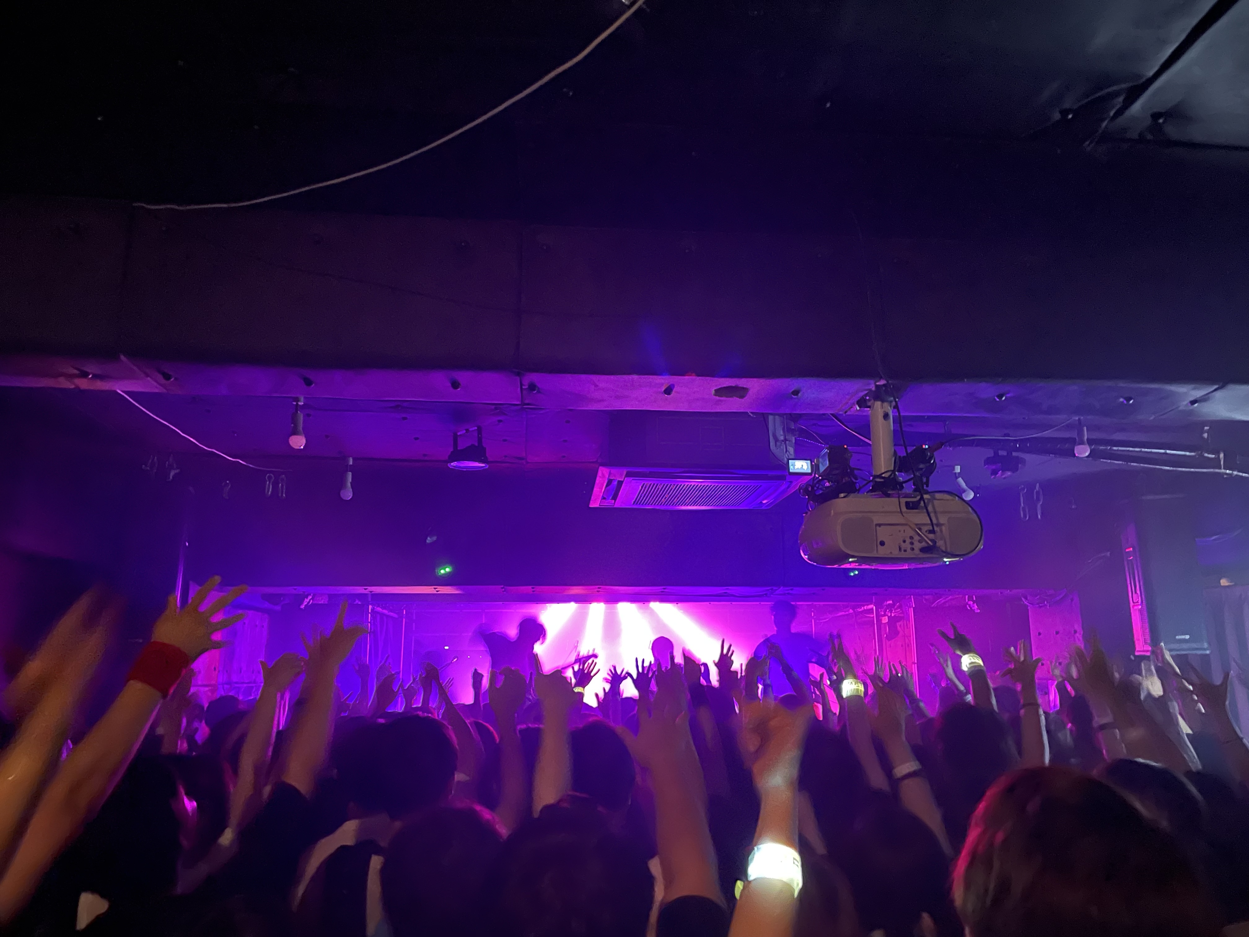 赤と紫色の照明が不気味な雰囲気を演出した「ウィスキーハロウィン」、つっくんが攻撃的なギターソロをかます一方で、ふじゃん(Dr)の刻むシンバルに合わせてメガテラ・ゼロとろまん西野が飛び跳ねた「HOWEVER」を披露。つっくんは「ツアー2本目、楽しんでますか? 御堂筋を回る“大規模”なツアーです」と本ツアーを改めて紹介すると、客席から「“小規模”やろ!」とツッコミが飛ぶ中、「騒ぎ散らかしていけたらと思うんで、よろしくお願いします」と後半戦へと加速していく。