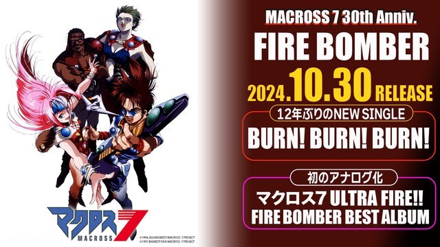 今年30周年を迎える『マクロス7』劇中に登場するロックバンド「FIRE BOMBER」の主人公であり、同バンドのボーカルでもある熱気バサラの誕生日である8月15日に開催された『熱気バサラ誕生日だぜファイアー! presented by マクロスモデラーズ』のSHOWROOMライブ配信にて、12年ぶりとなるシングル「BURN! BURN! BURN!」、さらにベストアルバム『マクロス7 ULTRA FIRE!! FIRE BOMBER BEST ALBUM』のアナログ盤が10月30日にリリースすることが発表された。
