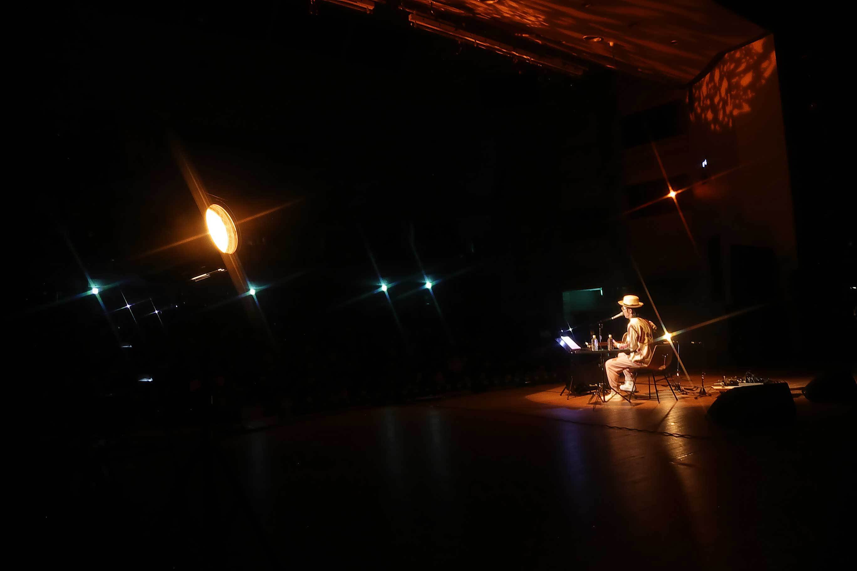 こんな年になっても子供の頃の夏休みのフィーリングを思い出す、と家族とのドライブ旅行の話題に。その頃に車内でよくかかっていた曲で、能登半島にかけて、山本コウタロー「岬めぐり」へ。客席からも気付くと手拍子がおきるテンポの良いフォークナンバー。本人いわく「僕の中の音楽成分は、この曲とマイケル・ジャクソンでできあがっています!」と言い、「車は家に着きましたから」とぼそっとつぶやき、爪弾くギターからあのメロディーが聴こえてくる。明るかった舞台が夕暮れ時の様な照明へと変わっていく。「家族の風景」は、いつ聴いても情景描写が脳内で再生されると気付かされる名曲である……。