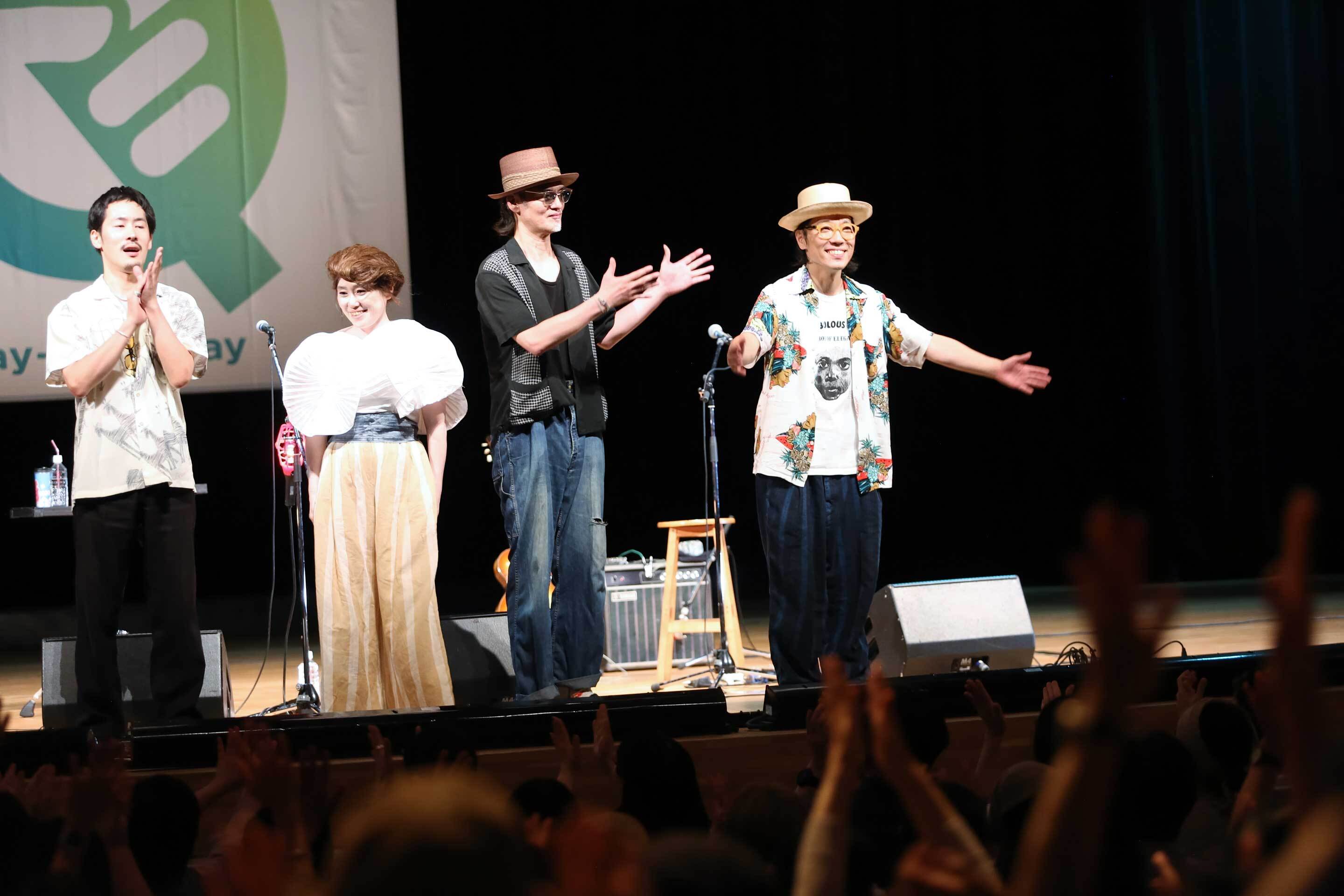 「素敵な2組が、みなさんの素敵な夜を彩るでしょう」と伝えて、ラストナンバー「HANASHI」へ。鍵盤のサウンドがリズミカルで、金沢やEGO-WRAPPIN’や永積さんなどを歌詞に入れ込みながら歌っていく。最後はマイクを通さず「楽しんで~」と言って、舞台を去っていった。観客みんなの心を温めてくれた素晴らしきトップバッター。