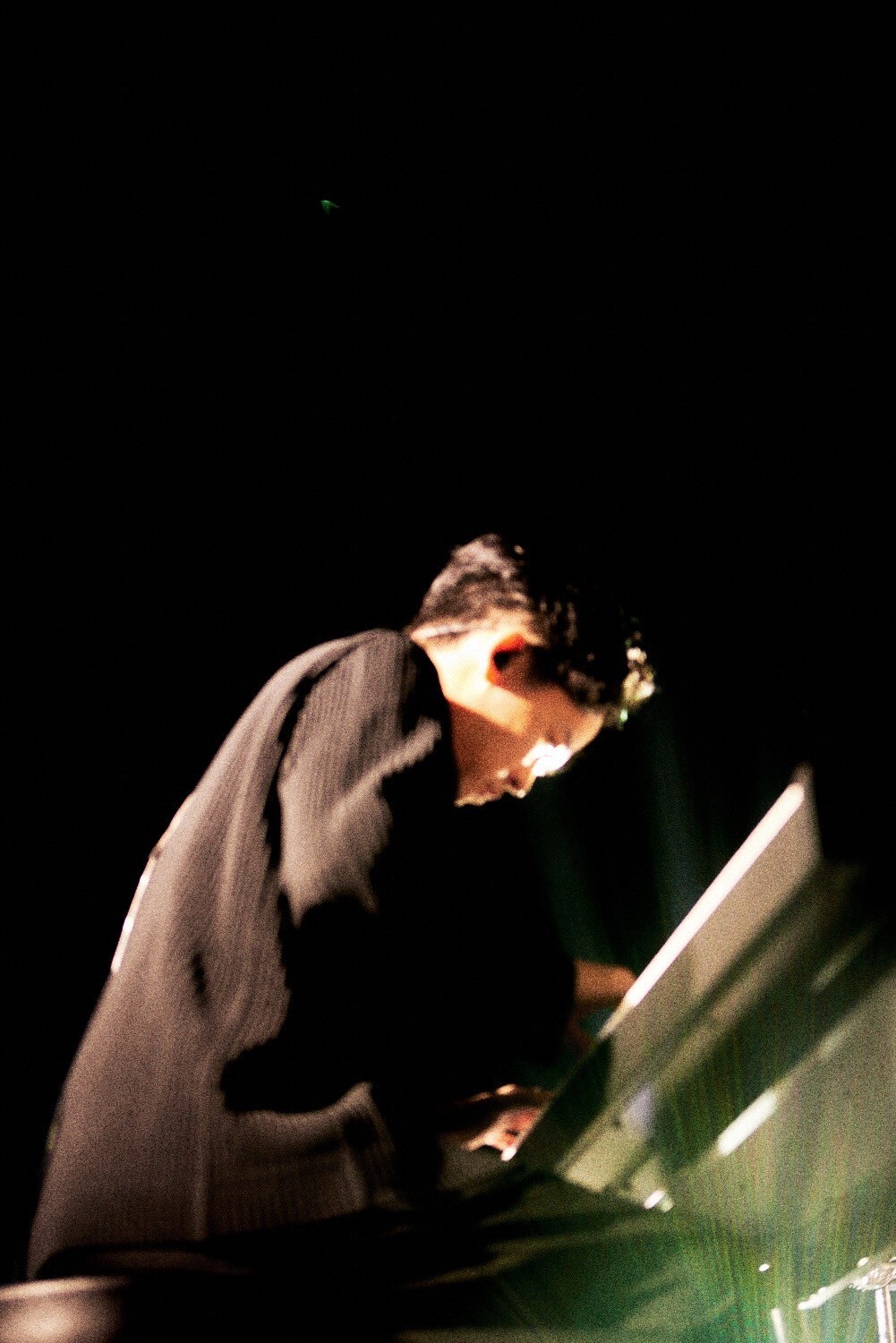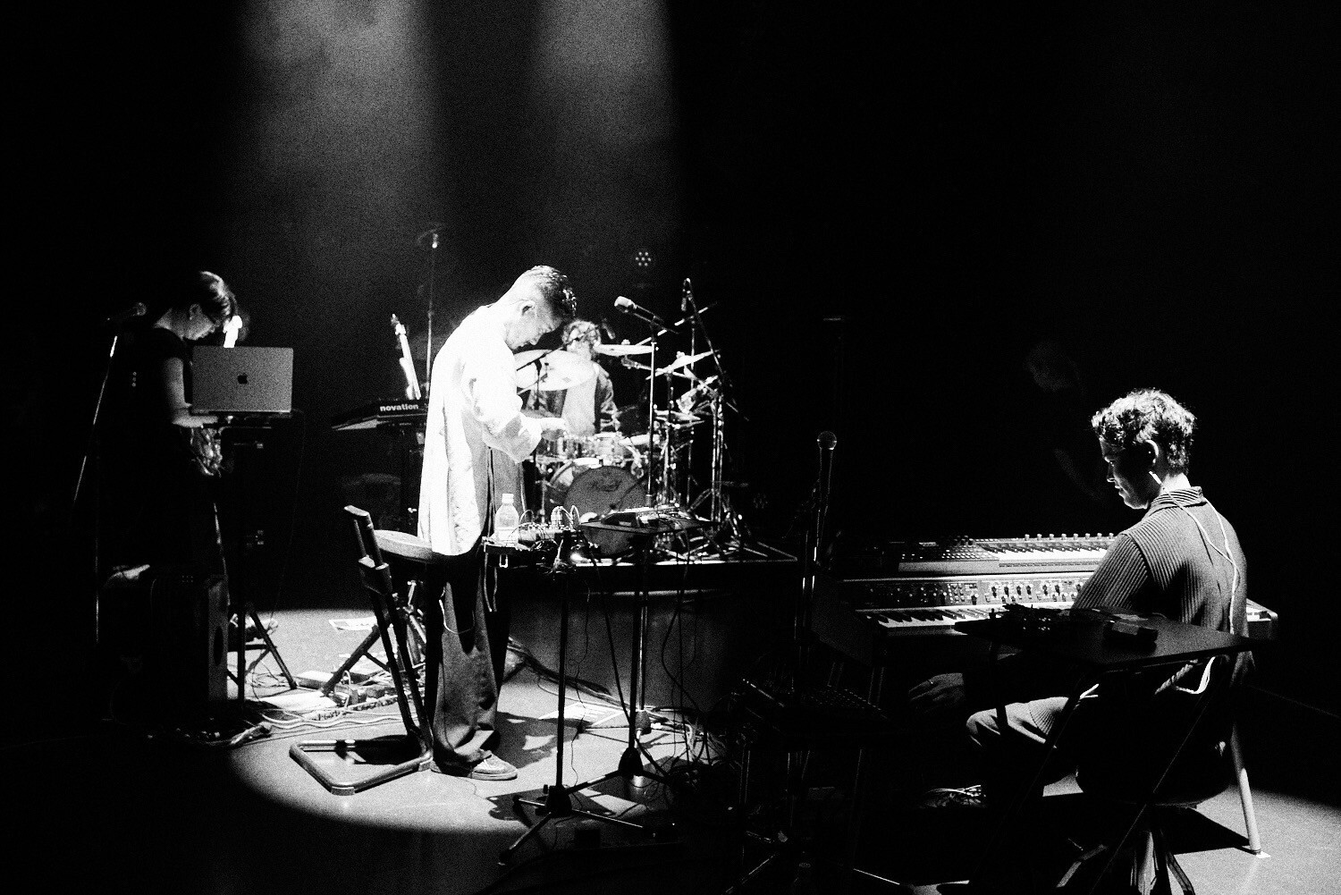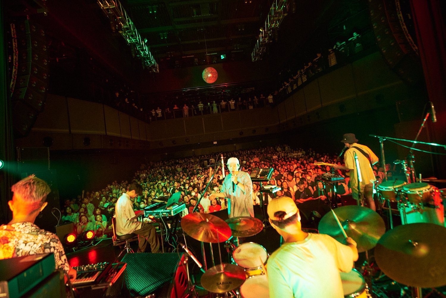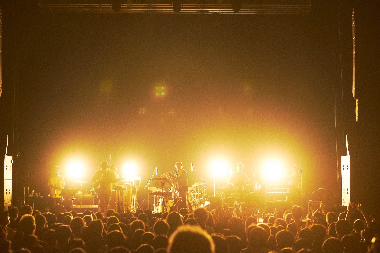 「それでもオーバーするかもしれないので、超特急で進めます」。高城のユーモラスなMCに、笑い声と拍手が起きた。次のセクションは『e o』からの3曲で、「Nemesis」はループする電子音のビートの上で、幾重にも重なりあうハーモニーがとても美しい。「Tableaux」もコーラスがよく映える曲で、歌えるメンバーが多いのは、ceroバンドの強みだ。心地よくチルできる曲が続いたあと、「Fdf」はぐっとテンポを上げて溌剌と、心と体をリフトアップするソウルミュージック。生音と電子音の融合も、8人の音の住み分けも、寄木細工のように恐ろしく緻密なのに、伸び伸びとした自然を感じる。ステージから放たれるバイブスがとてもポジティブだ。