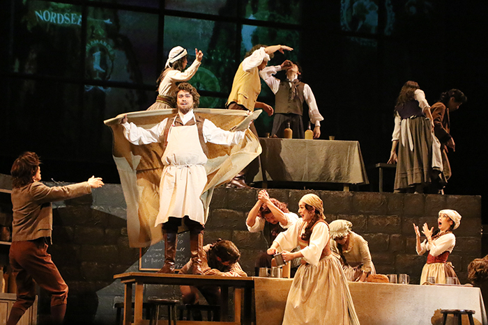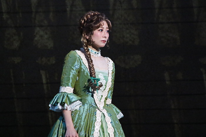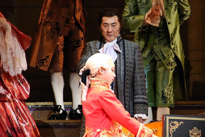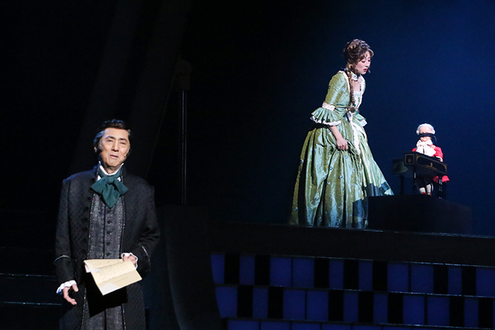 市村演じるレオポルトのナンバー「心を鉄に閉じ込めて」からは、息子への複雑な心境と親心がひしひしと伝わった。大塚千弘が演じる姉・ナンネールは、本来あったはずの自分の未来が奪われたやりきれなさを抑圧された芝居と歌唱で見せる。父も姉もヴォルフガングを愛し、誇りに思っていることがしっかり提示されているからこそ、家族のすれ違いが切なく痛々しい。