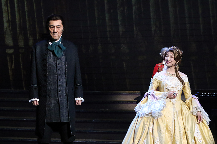 ヴァルトシュテッテン男爵夫人を演じる香寿がモーツァルト一家に語りかけるように歌う「星から降る金」は、レオポルトに向かって子離れを促す印象が強く、涼風演じる男爵夫人とまた違うアプローチだと感じた。ヴォルフガングの才能を評価し、包み込むように歌う姿が眩しい。