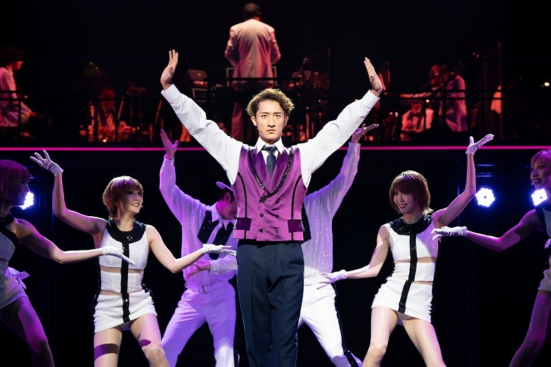 まずは劇中ナンバーより2曲を披露。〈Living In Living Color〉は天才詐欺師フランク・ジュニアの登場シーンだ。空港でFBI捜査官カール・ハンラティ(吉田栄作)に追い詰められたフランク・ジュニア(岩本照)は、自分の“鮮やかな”人生を回顧し始める。スリリングなやりとりから突然オーケストラが現れ、キラキラなセットの中、華やかなショーへと展開していく。華麗に歌い踊る岩本が異彩を放つ。