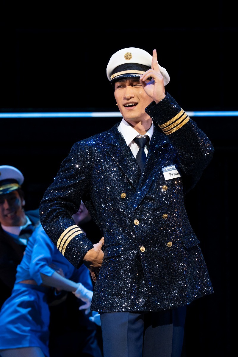 〈ジェット・セット〉は、フランク・ジュニアがパンアメリカン航空のスチュワーデスたちと出会い、どのように偽パイロットになったのか、その過程が描かれる愉快なナンバー。岩本のフランク・ジュニアは賢く抜け目なく、その上とってもチャーミング!これは誰でも騙されるよね…と納得するし、何なら騙されてもいいとまで思ってしまう。この先、フランク・ジュニアがどんな活躍を見せるのか、カール・ハランティがどのように追うのか、本番が俄然楽しみになった。