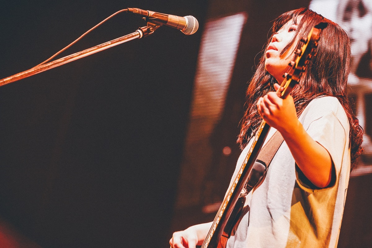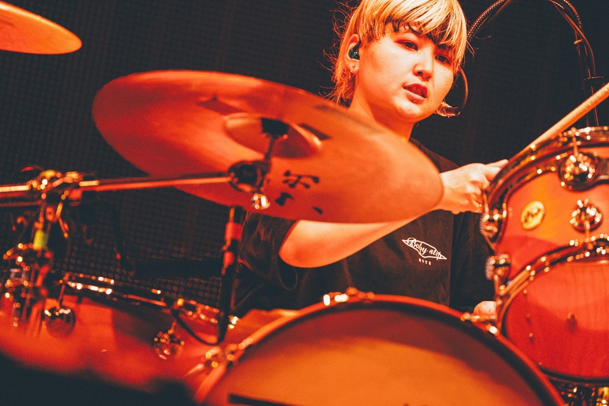 アップテンポのロックナンバーでも、バラードでも、声を振り絞るように歌いながら、慟哭しているようにも見えるほど、感情を剥き出しにする上野に、ともすれば注目してしまいがちだが、ことダイナミックな演奏という意味では、指弾きでグルーブを作るいのり(Ba, Cho)、たたみかけるようにフィルを加え、演奏の熱度を上げるミユキ(Dr)の貢献も見逃すことはできない。ロックナンバーとバラードを、セットリストの中で行き来しながら、8ビートを軸にしたリズムアプローチに変化をつけた「憧れ」のシャッフル、「バカ」のスウィンギーなビートも心憎い聴きどころだ。