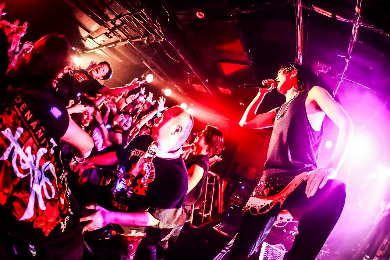 「今日のイベントのタイトルはなんや? 『SEKITAN(せきたん)』や。石炭になって火力をぶち上げてどんどん火力を上げていくんや! そんでもって炊き上がるのが俺っていうわけ。炊き上がる準備は、できてるか?」――煽りの言葉を合図に雪崩れ込んだ「ジャンクヒンズダンサー」を皮切りに、フロアはますますの熱気で包まれた。モッシュの嵐が吹き荒れた「ぬりかべ」。クラウドサーフが集中砲火のようにステージに襲いかかった「食事」。そして「骸Attack!!」は、壮絶だった。「俺の代名詞じゃ!」と叫んでから歌い始めた直後、フロア内の気温が上昇するのを肌で感じた。目玉をひん剥きながら歌い終えた直後の赤飯は、「楽しすぎるやろ! お前らが“一緒に騒ぎたい”と思って来てくれるから、この光景が作れてる。最高の41歳のバースデー、ありがとう!」と言い、興奮冷めやらぬ様子だった。
