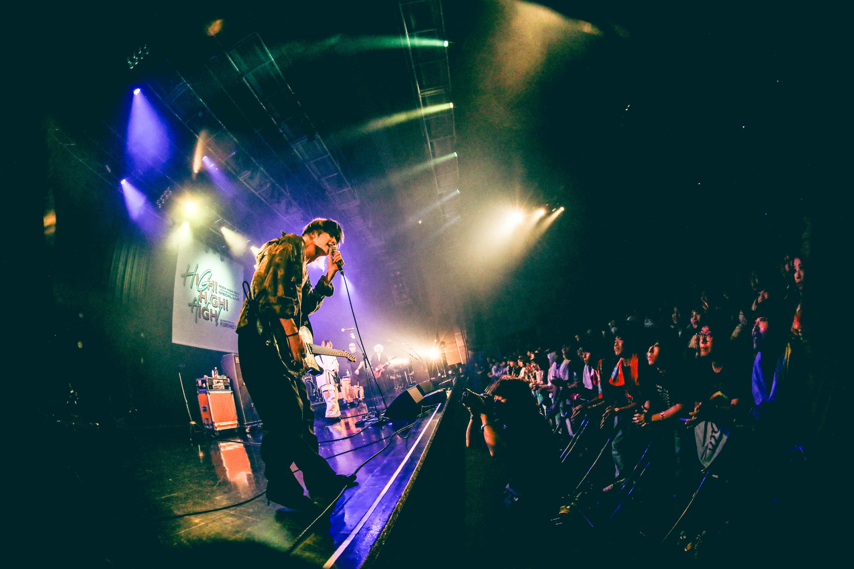 SEも何もない暗闇のなんばHatchに現れ、尾崎世界観がフリースタイルでゆっくりとささやいた「ナイトオンザプラネット」。約6時間にわたり行われてきた『HIGH!HIGH!HIGH!』の大トリと言えど、とりわけぶち上げることもない。「キケンナアソビ」でズシリとくる低音を鳴らすもそのスタンスは変わらず、躍動する長谷川カオナシ(Ba)のボーカル曲「かえるの唄」でも、クリープハイプのめくるめく世界にいつの間にか引きずり込まれていく……。