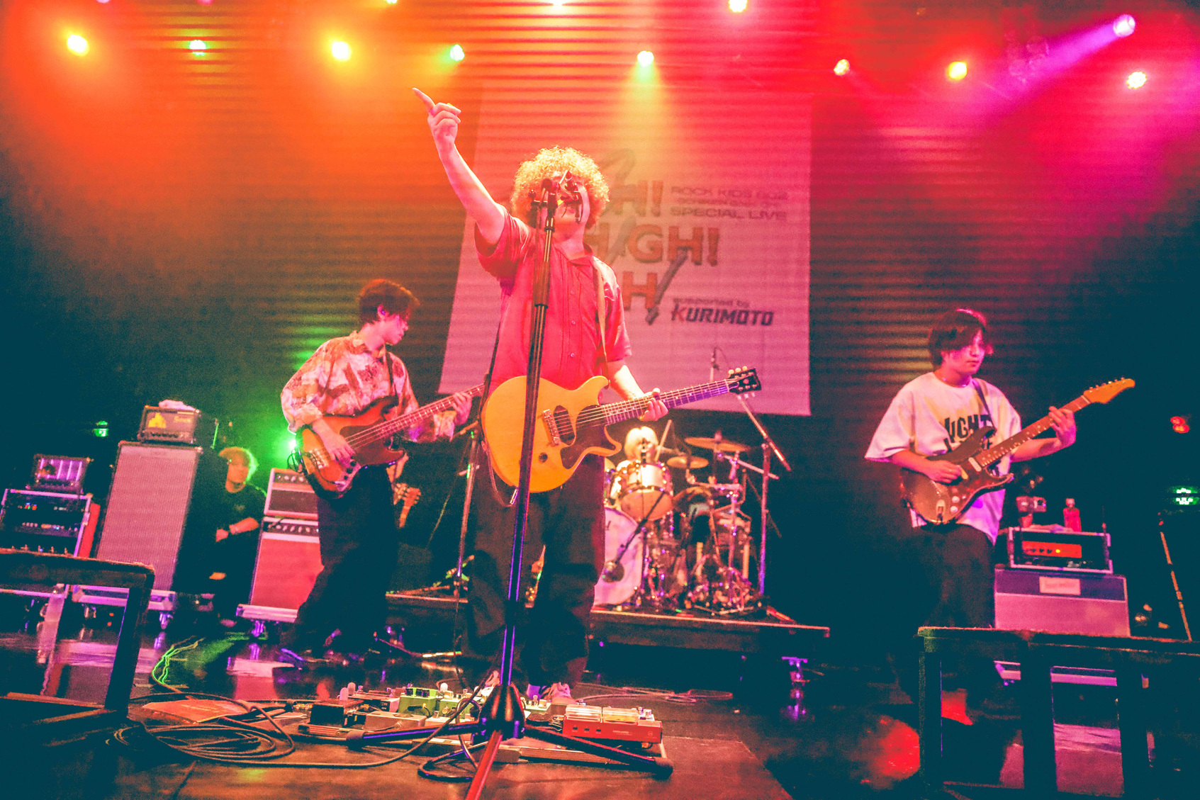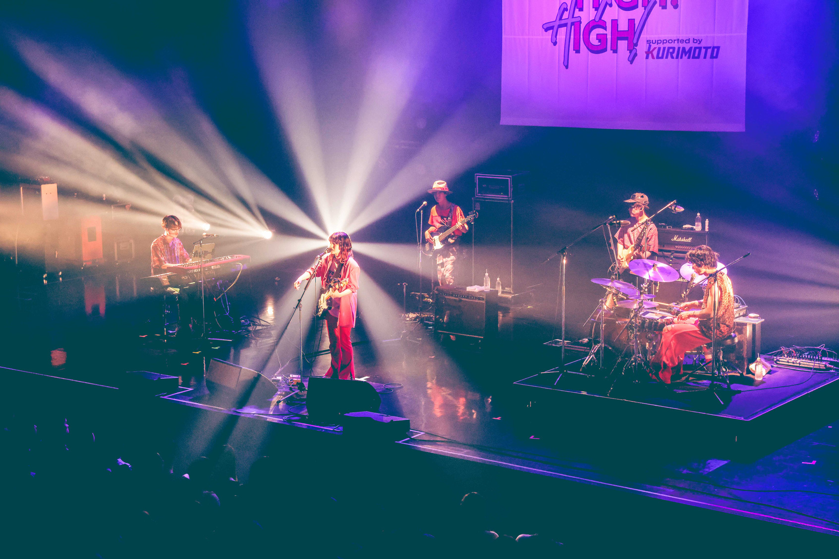 「『HIGH!HIGH!HIGH!』、今日は呼んでくれてありがとう! トップバッター、全力で盛り上げたいと思います。幸せに会いに行こう」(こたに、以下同)といざなった「ポルトロン」の醸し出すハピネスに満たされ、ユニークなワードチョイスとリフレインが耳に残る新曲「ルビを振れ」、続く「feat.あなた」では、リリック面でもバンドの個性を存分に発揮する。