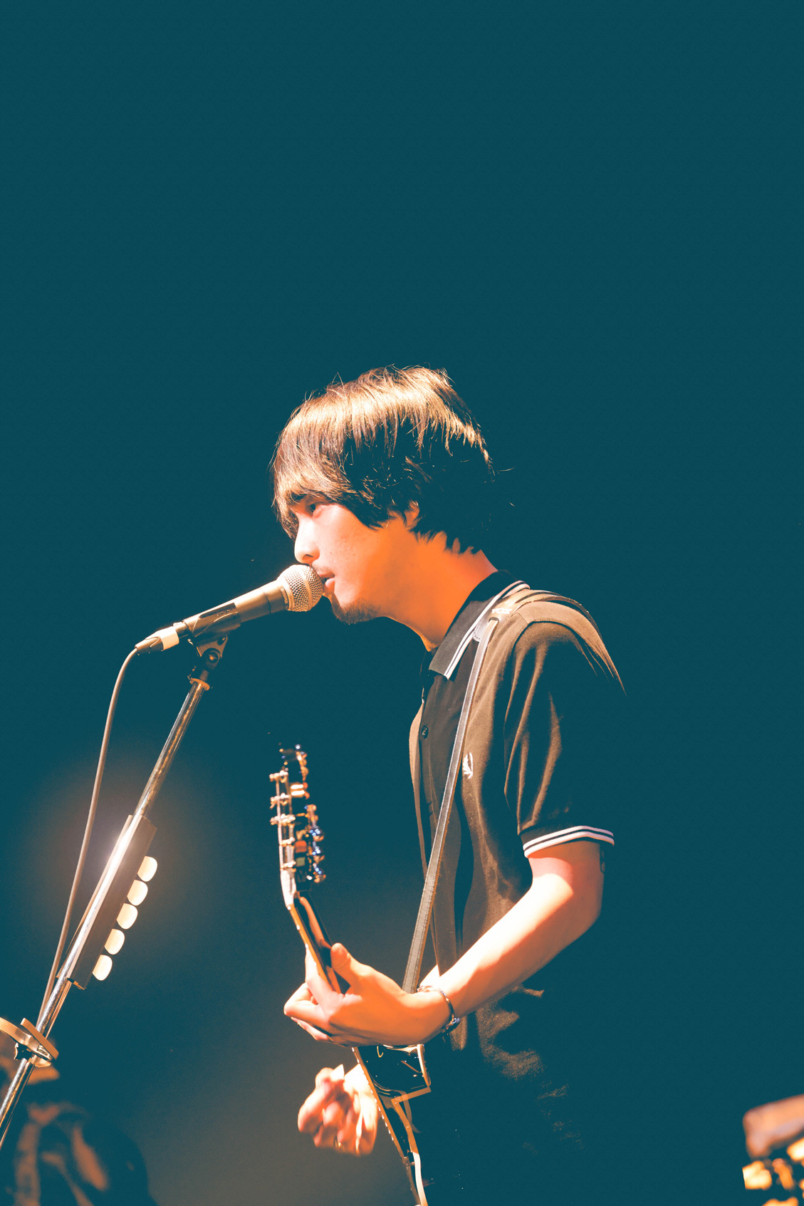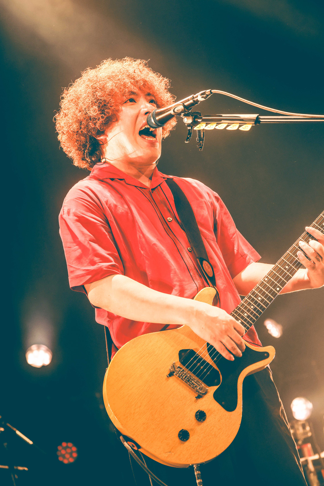 最新アルバム『最後の初恋』さながら、SEの「NOT WAR,MORE SEIKATSU」からガラリと空気を変えたのが、Cody・Lee(李)だ。「We are Cody・Lee(李) from sakuramachi records、よろしくお願いします!」と高橋響(Vo.Gt)があいさつし、力毅(Gt.Cho)のスライドギターとコーラスワークが抜群に効いたパワーポップ青春賛歌「涙を隠して(Boys Don’t Cry)」でいきなり鳥肌。たった一曲でソングライティング力、アレンジ力の高さを証明する問答無用のグッドミュージックで、「ストロベリーエンジェル〜Don’t Say Goodbye~」でも80~90sなオケヒを駆使したビートロックな遊び心と大仰なサウンドスケープでも楽しませるなど、音楽が好きでたまらないミュージックラバーぶりがみずみずしく溢れ出す。