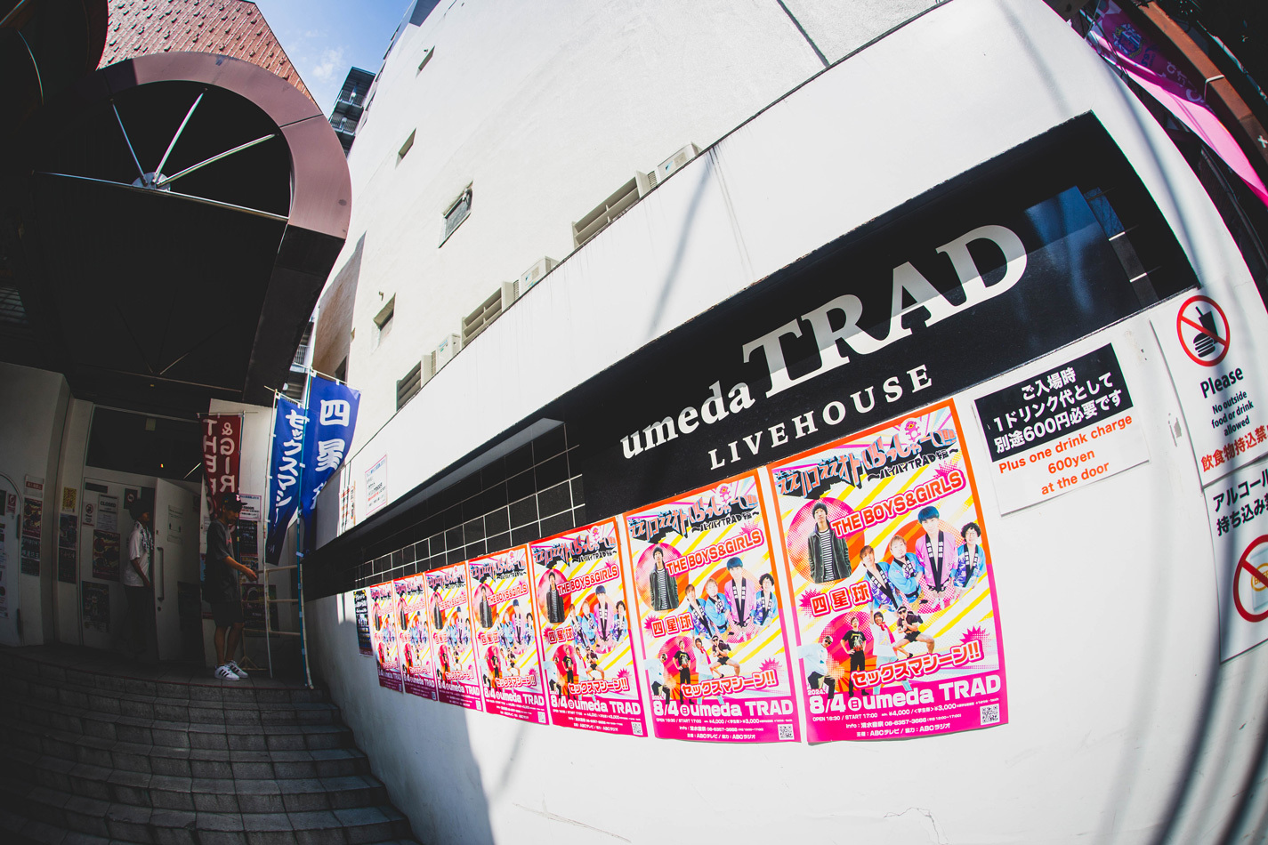 ABCテレビ主催のイベント『ええハコええオトいらっしゃーい!! 〜バイバイTRAD編〜』が、8月4日(日)に大阪・umeda TRADにて開催された。『ええハコええオトいらっしゃーい!!』は初開催のイベントであるが、10月末でumeda TRADが閉館されるため、「〜バイバイTRAD編〜」と副題が付けられている。四星球、セックスマシーン!!(以下、セクマシ)、THE BOYS&GIRLS(以下、ボイガル)という長い付き合いがある3組による対バンとなった。