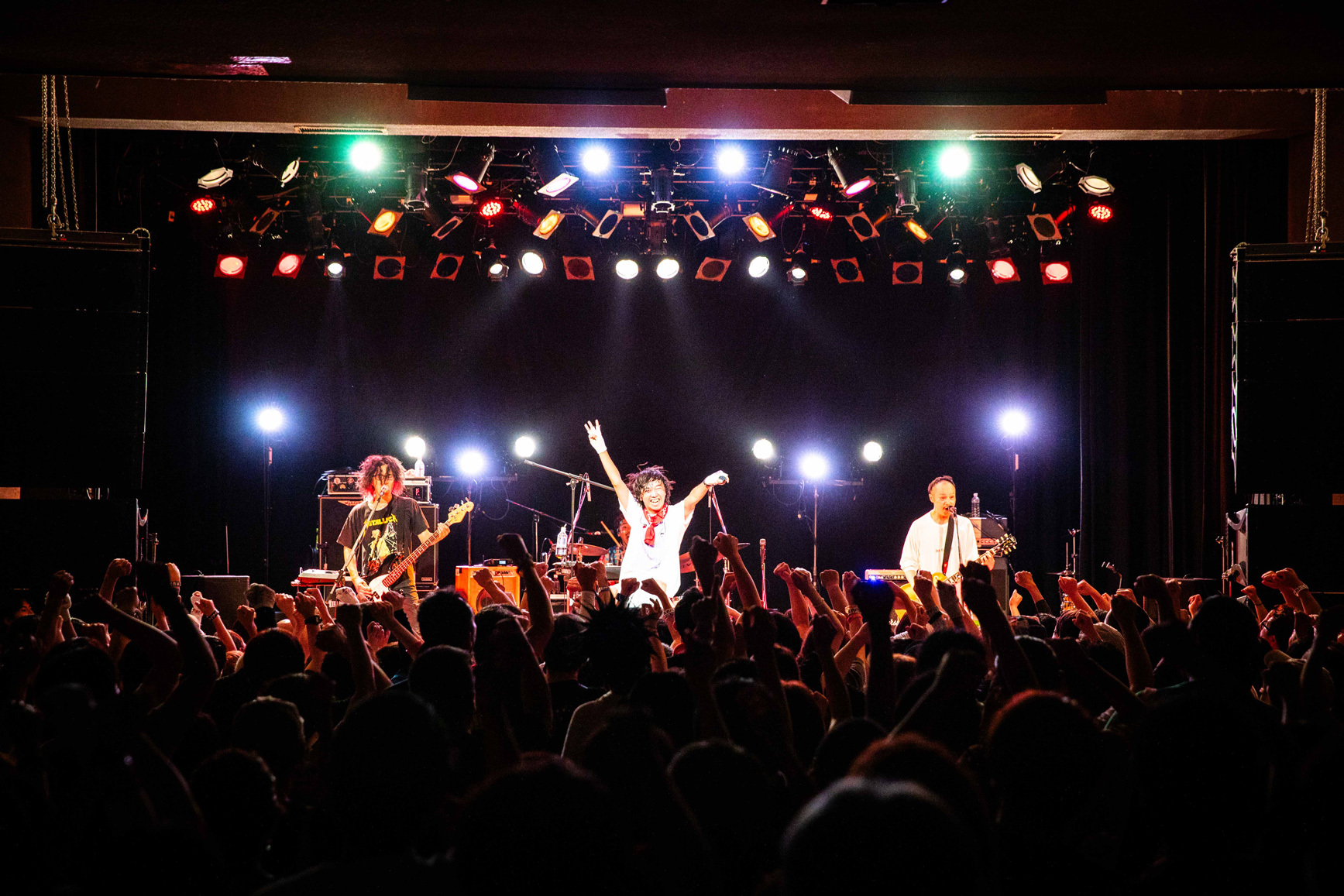 長年お世話になったライブハウスであれば思い出の曲をやりたいはずなのに、新曲「ロックンロールケーキ」を序盤からぶつけてきたのも良かった。ポップでキャッチーなロックンロールナンバーながら、終盤で荒れ狂う感じもロックンロールバンドならではでグッとくる。そこから「ふざけてナイト」へとなだれ込むが、どこかで冷静さは忘れていないし、「テレビカメラ入っていないし、無くなっちゃうライブハウスなので、次の1曲だけ撮ってください!」と「リンネリンネ」へ。エモーショナルなストーリーを築き上げていくという意味では流石であった。