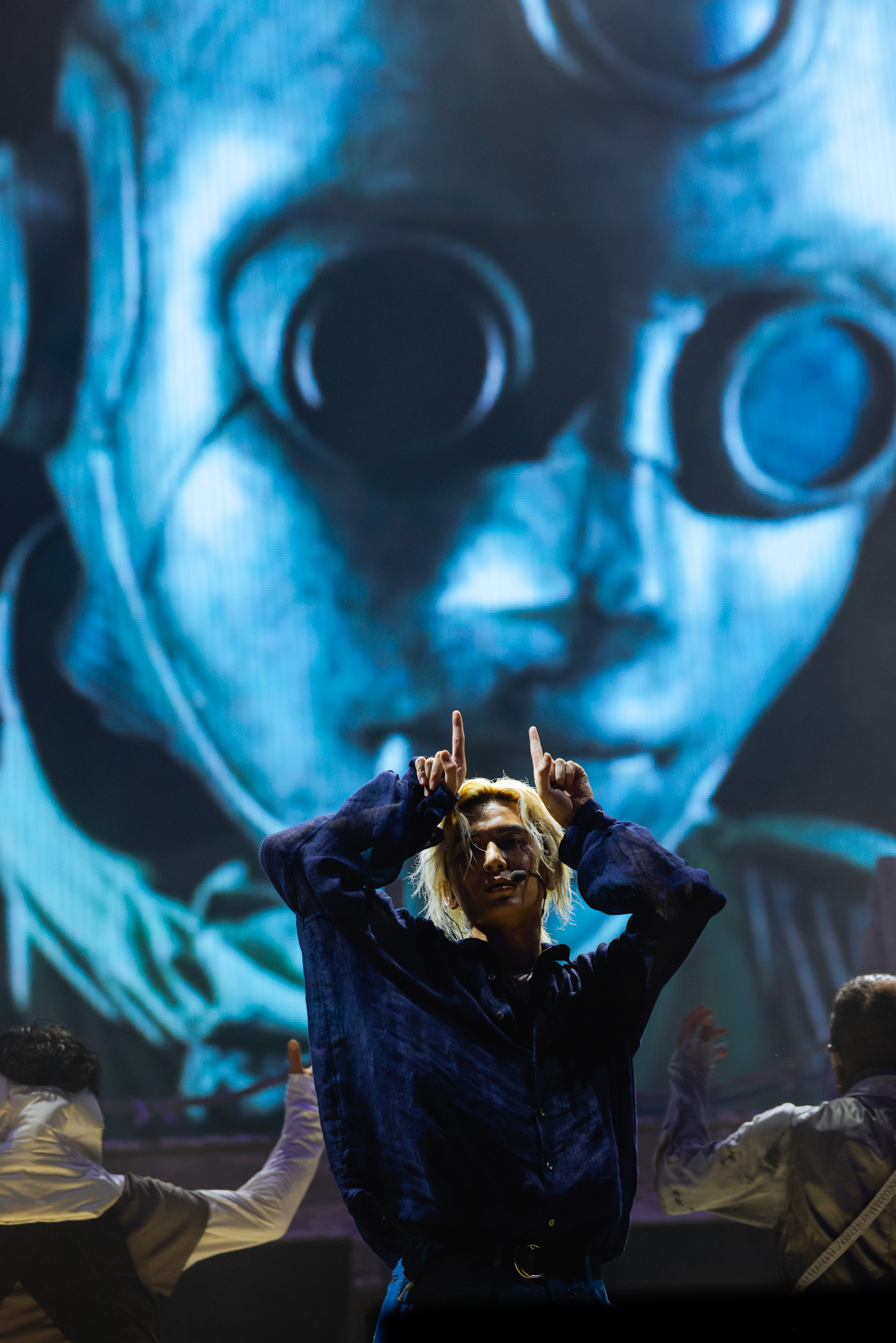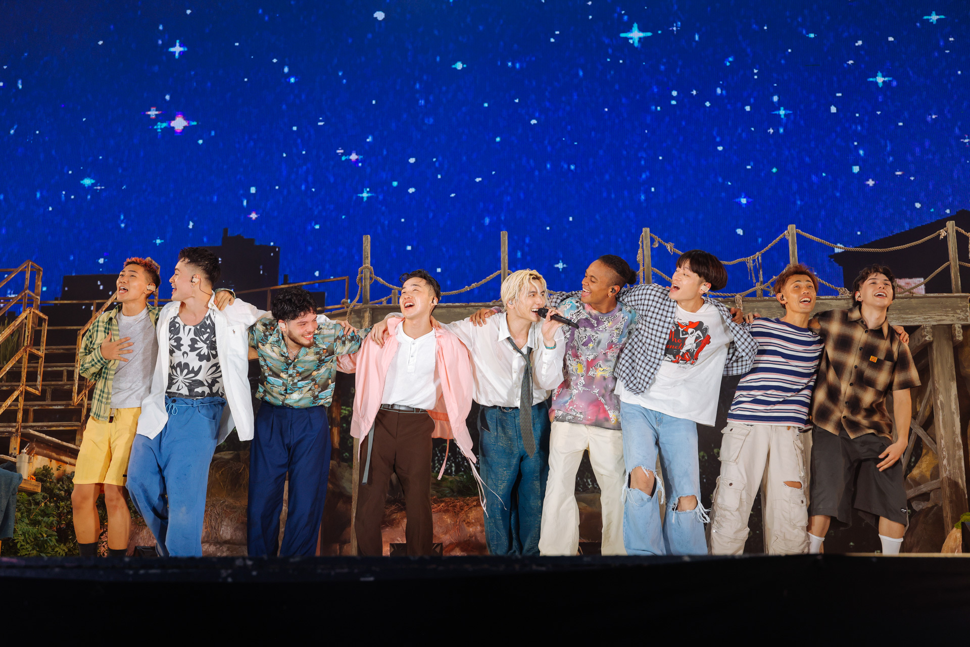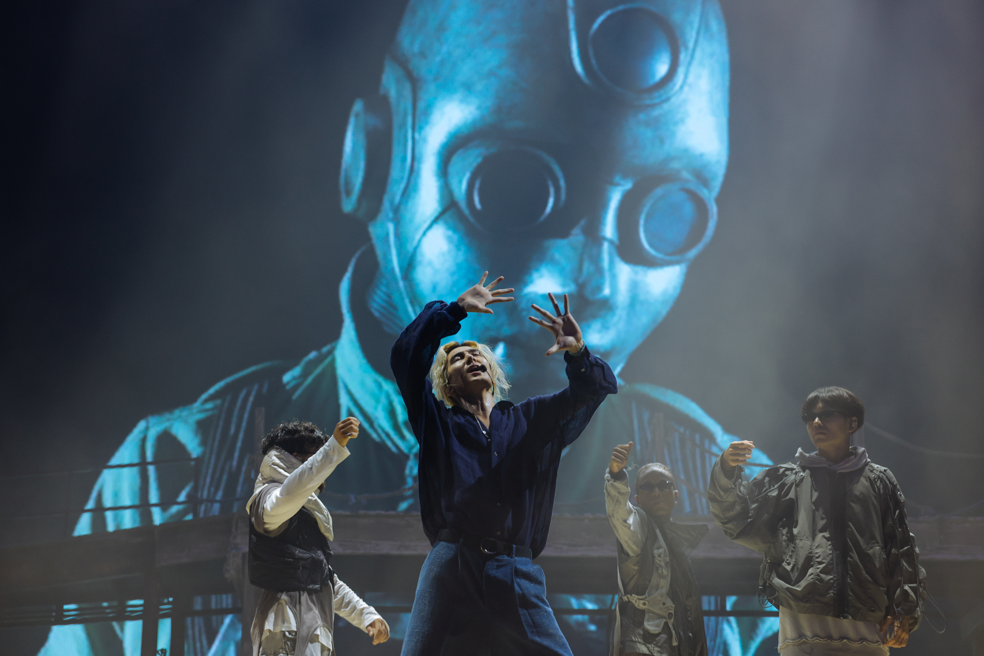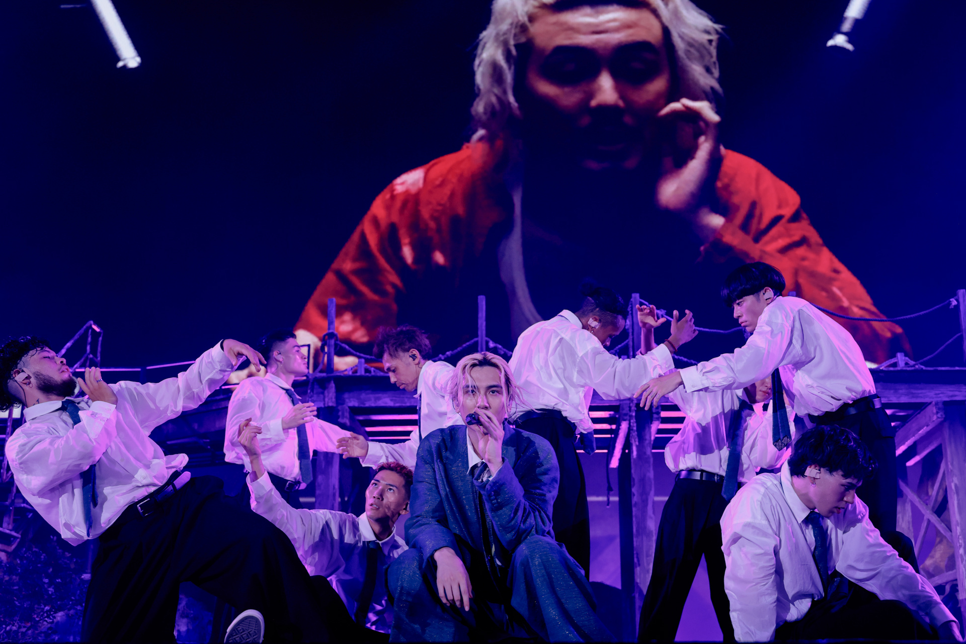 そこからの“きらり”、“キリがないから”、“燃えよ”というダンサブルな3曲では、フィジカル的にもより大きな躍動と高揚を誘発しながらスタジアムの熱をぐんぐん引き上げていった。巧みなコード・プログレッションが施されたスペイシーなファンクチューン“キリがないから”でのロボットダンスや、“燃えよ”で新たに追加されたダンスパートも含め、ダンサー陣との呼吸もバッチリ。楽曲の終盤、リリックがある箇所以上に雄弁な、まさにその魂そのものが音楽になっていく様を目の当たりにするかのような圧倒的な歌唱も実に見事だ。