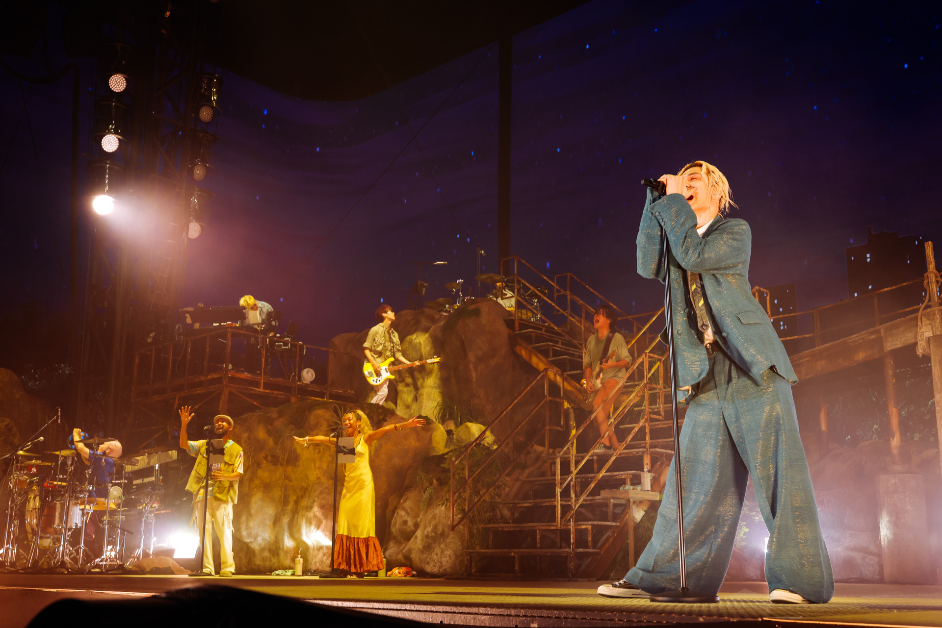 ヴィジョンに映し出された流星群と客席に揺れるスマホライトが幻想的な光景を描き出し、遥か天高く伸びてゆくかのようなソウルフルな歌声が大きな感動をもたらした“満ちてゆく”。オーディエンスによるクラップがそのグルーヴの一端を構成し、自由で幸福なヴァイブスの交歓が生まれていった“青春病”。メンバー紹介を経ての“何なんw”では、1曲の中で極めて多彩な表情を宿したグルーヴィな歌唱表現を響かせながら、スタジアム全体をどこまでも揺らしていった。それぞれが辿ってきた人生の1シーンや胸にある想いがその音楽と呼応し、互いに重なり合い混じり合いながら、壮大でありながらも親密な音楽体験をもたらしていく、そんなライブだったと思う。