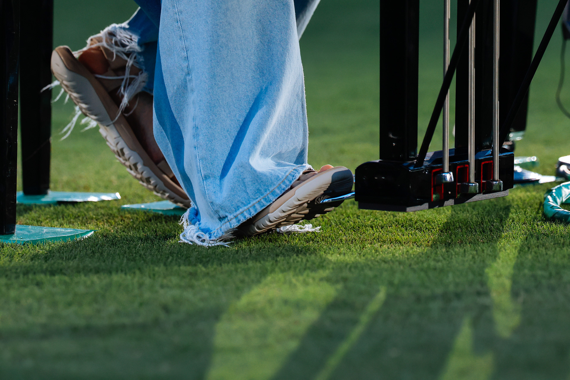 開演予定時刻を過ぎ、7万人が「その時」へと期待感を膨らませていくなか、突然、客席エリアからフィールドへと登場した藤井 風。驚き熱狂する観客達の間をゆっくりと歩きながら、アリーナ中央にぽっかりと開けた芝生スペースへと歩を進めていく。そしてそのまま、そこに佇むピアノに向かい、ひとり静かに、音楽を奏で始めた。歌はなく、ピアノ曲としてアレンジされた“Summer Grace” (原曲:grace) の美しい響きが、人々の心に清々しいかぜを吹かせてゆくかのように静かに広がっていく。