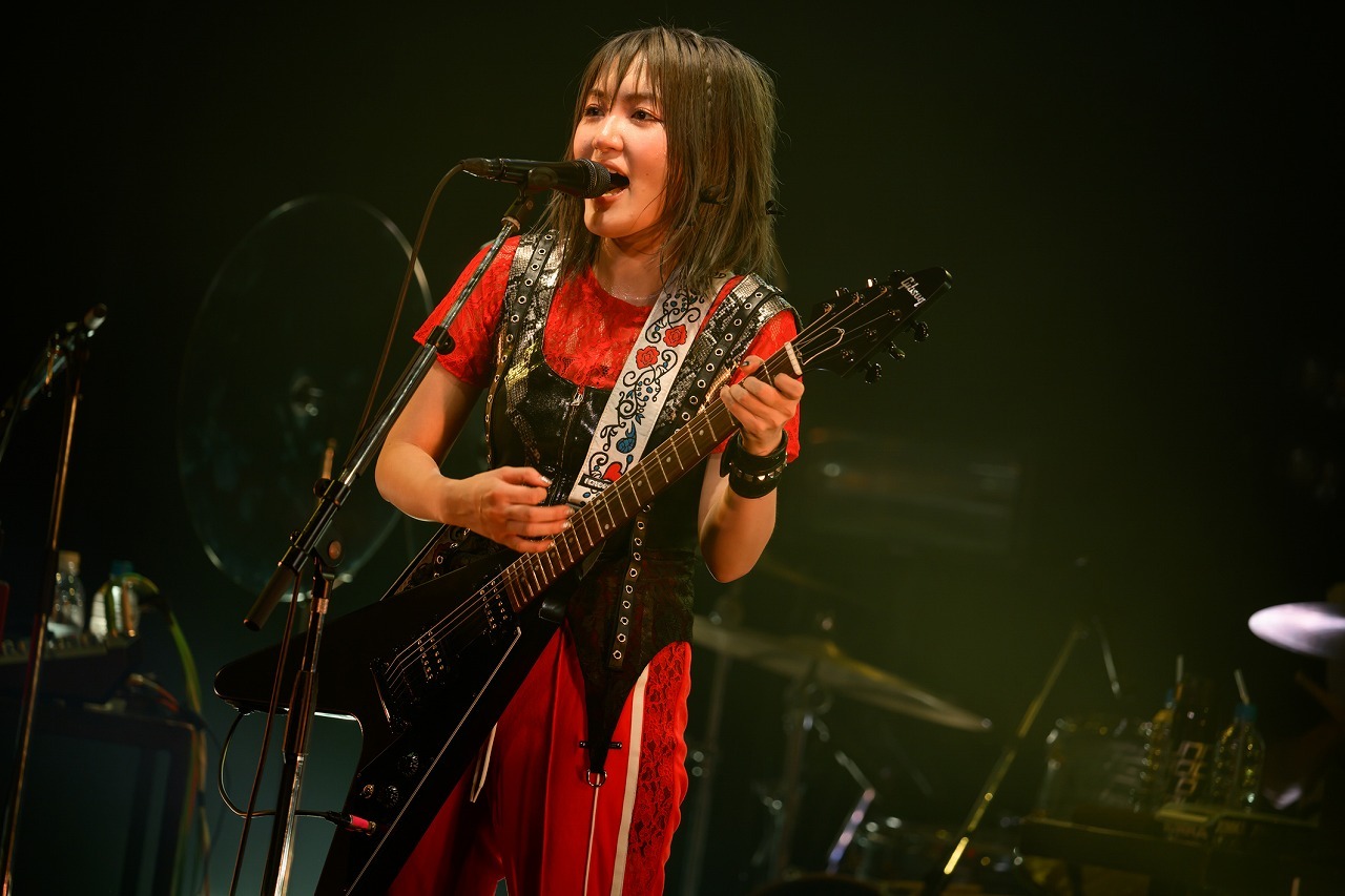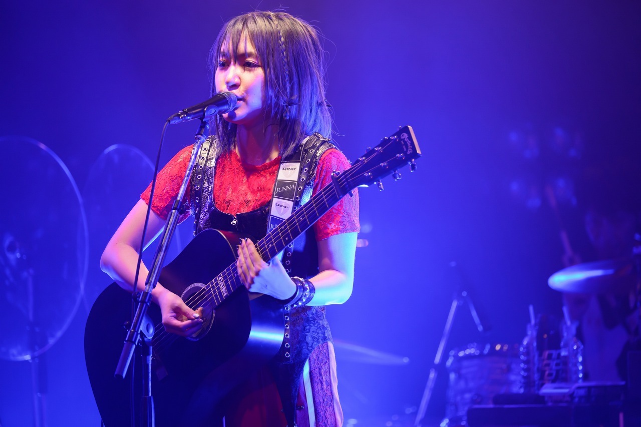 アンコールでは「皆さんアンコールありがとう! ずっと汗だくで前髪がやばいよ(笑)」と言いながら、しっかりと感謝の気持ちを語っていく。「今日は平日にもかかわらずライブに来てくださってありがとうございます。“やっぱりライブっていいな”と思いながら、楽しいという感情だけで歌っていました。ライブって一人ではできないし、誰かに向けて歌う歌ってパワーが全然違うんです。みんなの声を聞いて、笑顔を見られて、それが私の力になる。この力を、またみんなに返せたらと思います」。そう言って披露された「You + Me = ?」によって、ハッピーでピースフルな空気が会場を満たしていった。