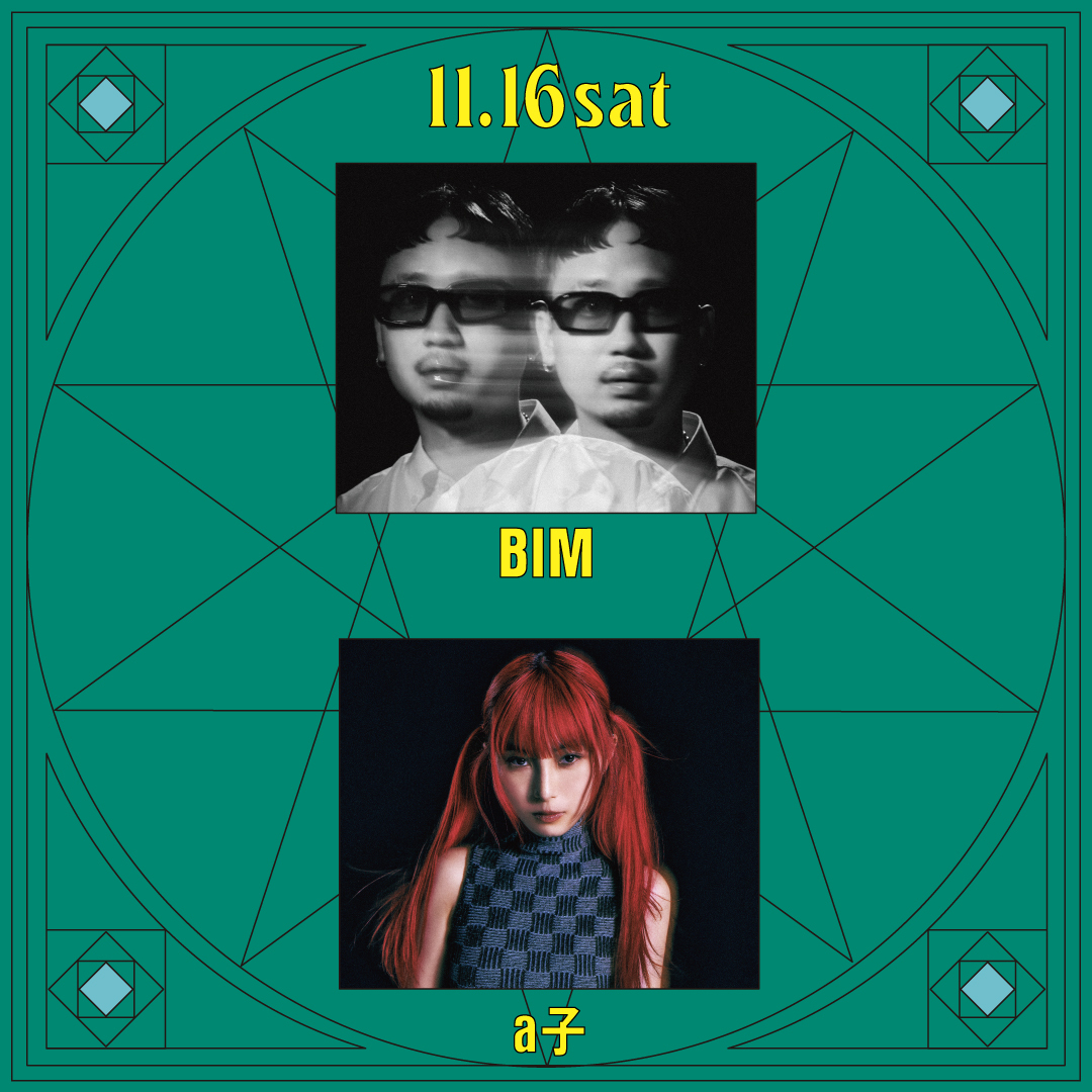 初日の11月16日(土)には、THE OTOGIBANASHI‘S、CreativeDrugStoreの中心人物として活動しながら、ソロラッパーとしても人気を誇るBIM、2020年に本格的にアーティスト活動を開始し、情緒的な楽曲の数々は本人がプロデュースしながら制作するなど注目を浴びるシンガーソングライター・a子の出演が決定。