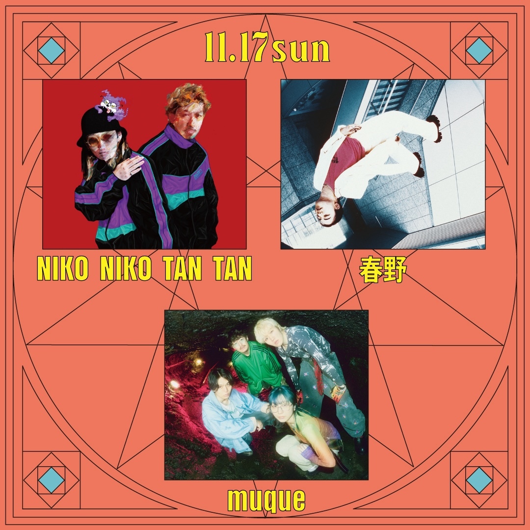 2日目の11月17日(日)には、ジャンルを超越した音楽×映像×アートを創造する、クリエイティブミクスチャーユニット・NIKO NIKO TAN TAN、作詞・作曲・トラックメイキングまで自身でおこなうなど、マルチな才能を発揮するネット発の次世代シンガーソングライター/プロデューサー・春野、それぞれが違うルーツを持つメンバーで、主にPOPS、R&B、ROCKなどのジャンルからインスパイアした曲を自らで手掛け、抜群の歌唱力とグルーヴ感のある演奏で注目されている4人組バンド・muque、以上の3組の出演が決定。