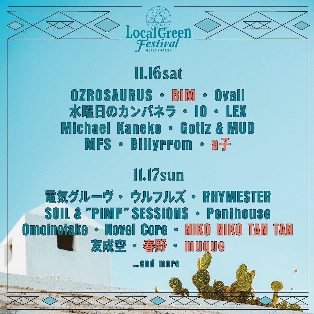 2024年11月16日(土)・17日(日)に横浜赤レンガ倉庫で開催される、「Life with Green」がコンセプトのグリーンとグッドミュージックが楽しめるフェスティバル『Local Green Festival’24』の第四弾出演アーティスト発表された。