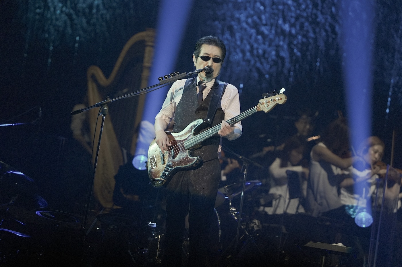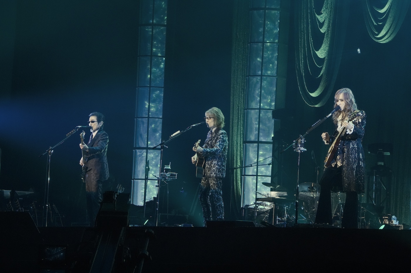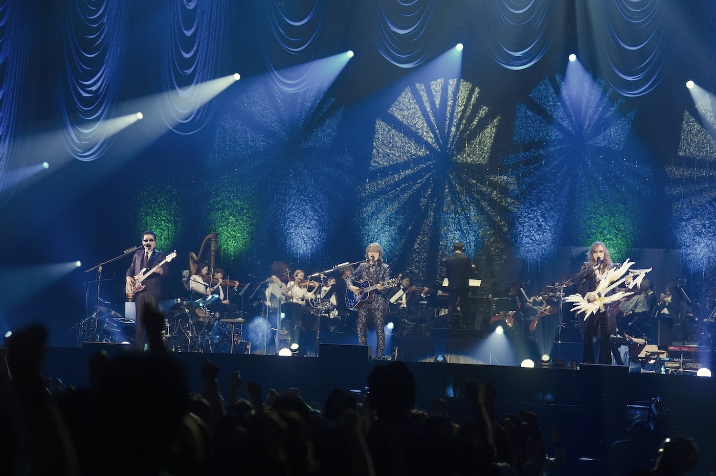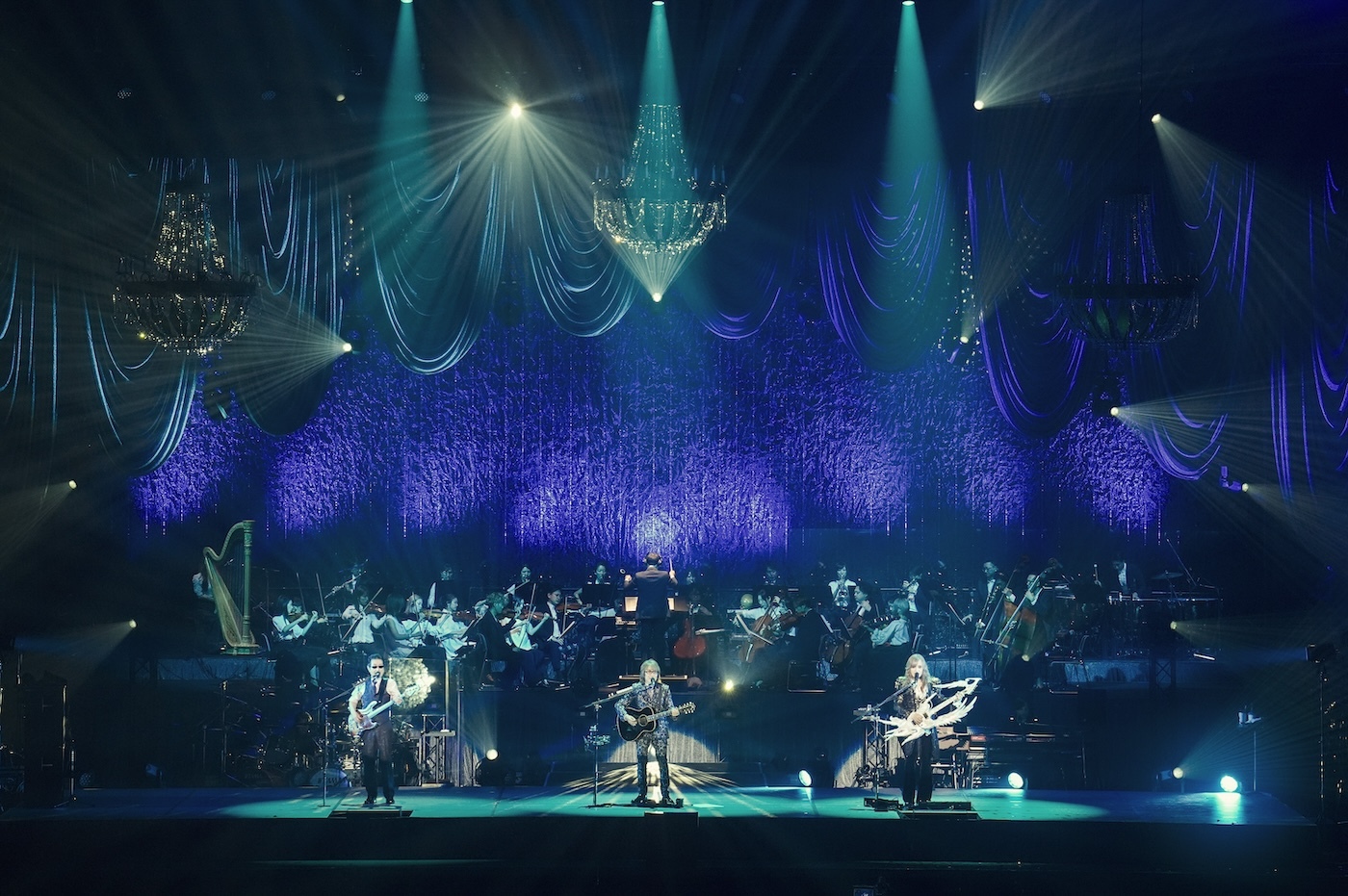 学生時代やデビュー当時に3人でよくカバーした、サイモン&ガーファンクルの「The Boxer」、ビージーズ「メロディ・フェア」など、アルフィーのルーツとも言える洋楽の名曲を聴かせてライブは幕を開けた。中盤には総勢31名からなるTHE ALFEE Premium Orchestraとともに、ヒット曲「星空のディスタンス」、デビュー曲「夏しぐれ」を含む5曲を壮大なクラシックバージョンで披露。