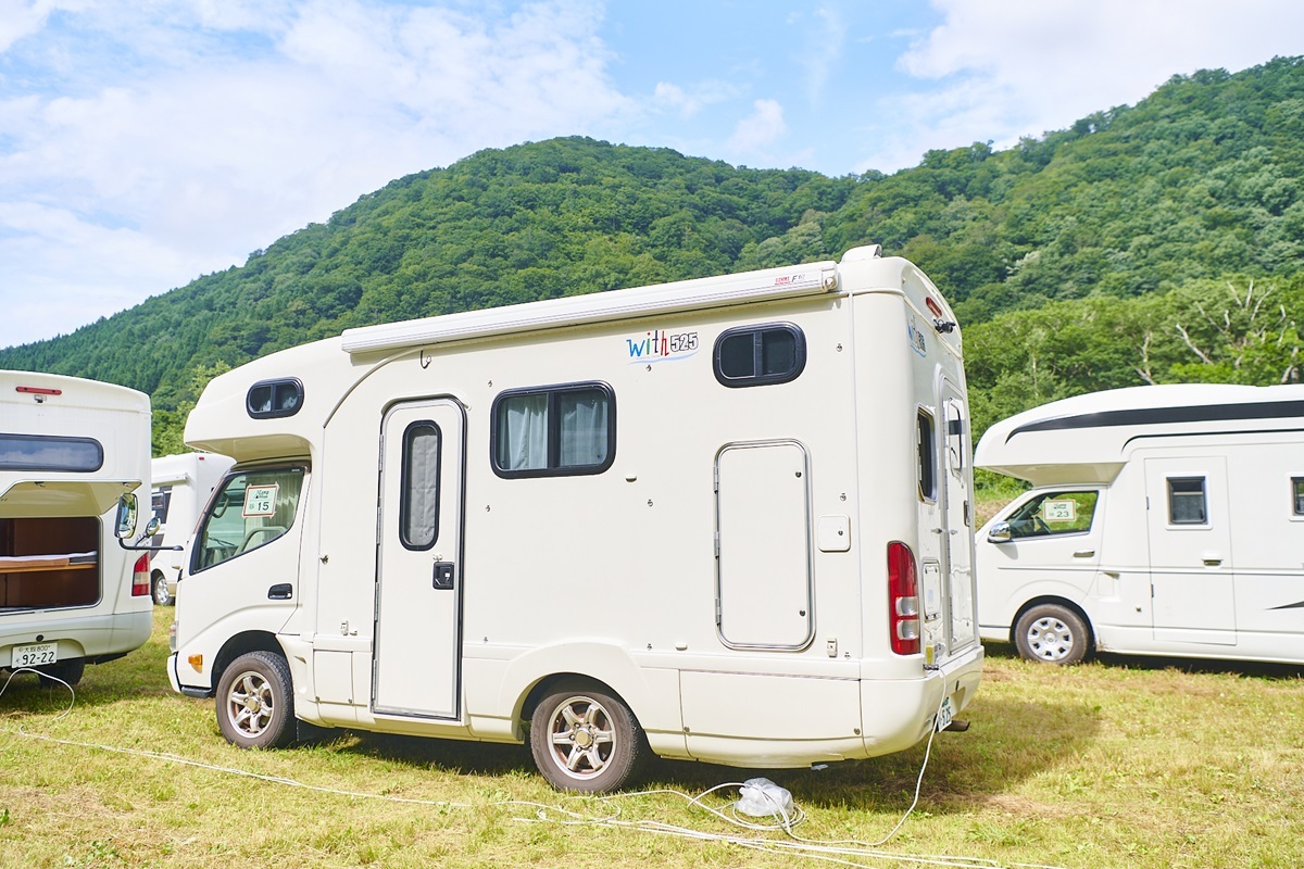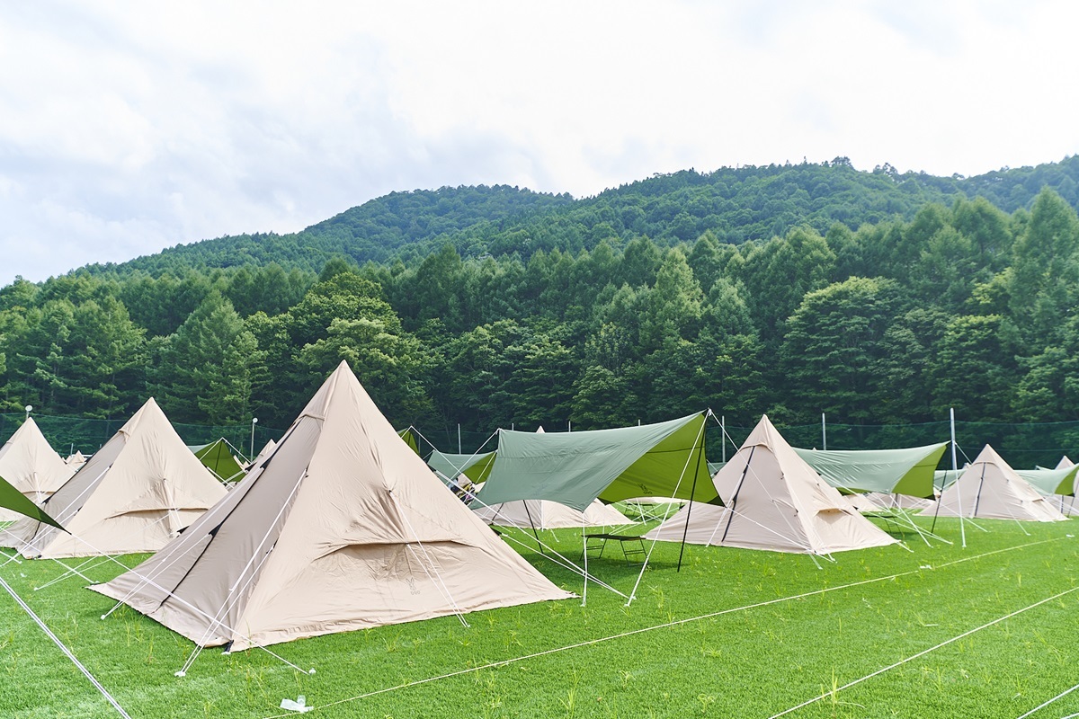 新たに誕生したキャンプエリア「CAMP VILLAGE」では、海外からの来場者の利用も多く、フラットな地面に張られたレンタテントや、冷房も使えてプライバシーも確保できるキャンピングカーでのキャンプで快適に過ごせた模様だ。