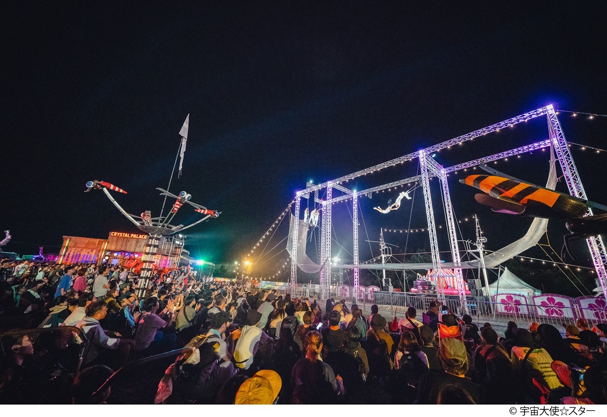 そして『フジロック』では、昼と夜、2つの異なるサーカスを観ることができる。昼はPYRAMID GARDENで毎日開かれるクロワッサンサーカス、夜は大人の遊び場THE PALACE OF WONDERで毎夜開催される、さくらサーカスだ。クロワッサンサーカスは子どもたちが綱渡りや空中ブランコなどを体験できるワークショップもあり、さくらサーカスでは深夜にもかかわらず大勢が詰めかけ、スリリングなパフォーマンスに夜ごと魅了される人が続出していた。