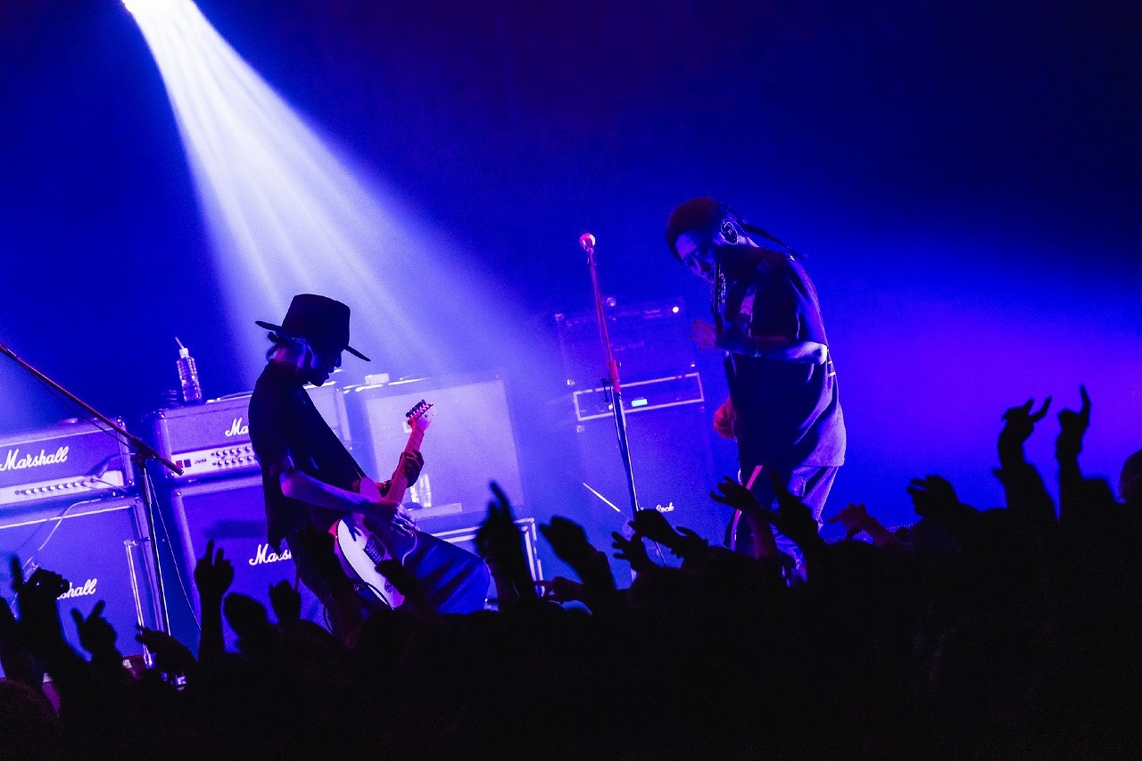 DJシド・ウィルソンの役割をMacBook Proで務めるSacchanを先頭に登場したメンバーは、本家よろしく全員お揃いのつなぎ姿。楽器が地に着きそうなほど低い位置で構えるミヤとMasa、国内外で活躍するギタリスト・SAKIが頭を振りながら極悪リフを刻むなか、初出演の架神がV系メタルコアの矜恃を掲げて全力で咆哮する姿が頼もしい。いつの間にかバットを持ってオーディエンスを焚きつける煽り要員に変貌したSORAとBikkyが暴れ回り、「People = Shit」でAllenがドラムソロパートをキメるなど、血湧き肉踊るメタル・パーティを満喫した。