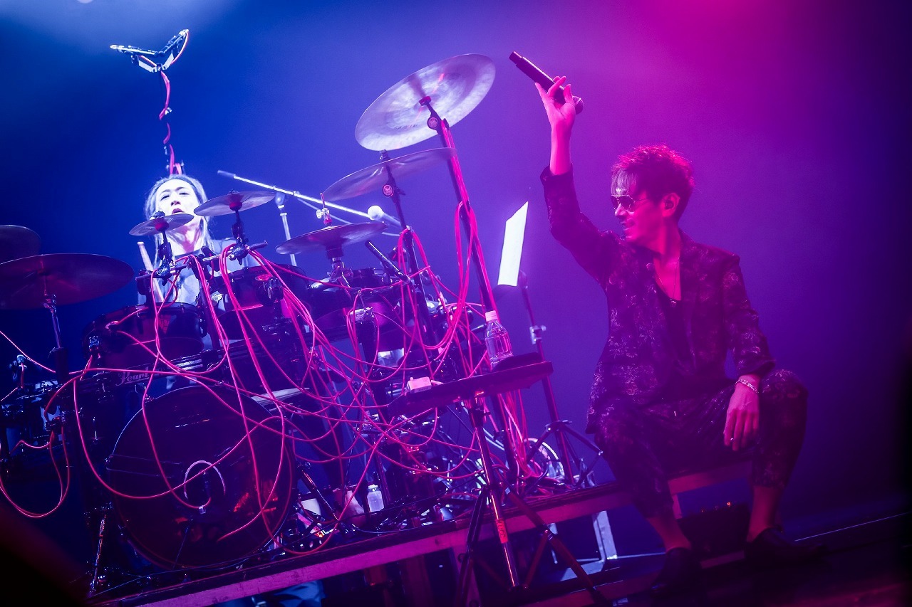 本家LUNA SEAのライブで一度も披露されたことがない「FAKE」、さらに「Rejuvenescence」は現在開催されている再現ライブシリーズでも演奏されていない曲だ。定番曲のカバーでは物足りないというメンバーの熱意を感じるとともに、ニューウェイヴの影響が色濃い華やかな楽曲群は、多彩な表現力を持つ今回のメンバーによく似合う。艶と深みがある逹瑯の歌声と、動きや音色にまでこだわりを感じるHIROTOとMiyako、パワフルな低音でグルーヴの芯を担うAKi。Shinyaは壮麗なドラムセットでエネルギッシュなプレイを見せ、それぞれの個性を活かしたカバーに仕上げていた。ラストの「LAMENTABLE」まで初期曲で貫いた貴重なセッション。その愛情は、奇しくも同日ライブを行っていたLUNA SEAに届いたはずだ。