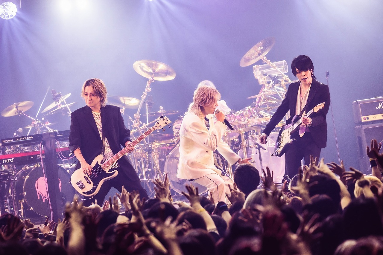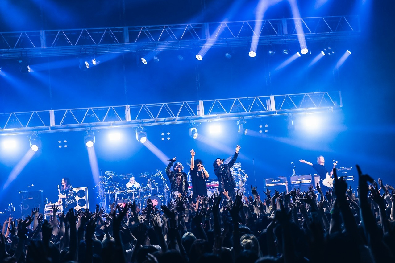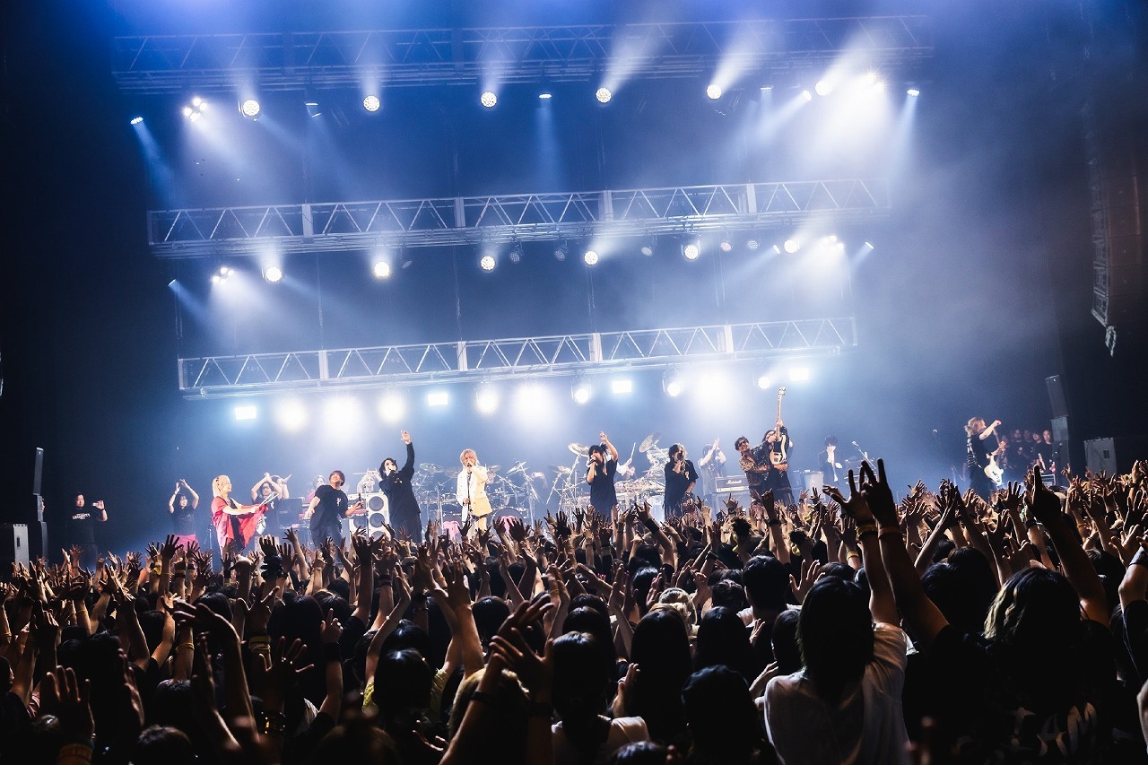 最後は、逹瑯、千秋、Shouのトリプルボーカルに、Ken&[ kei ]のツインギター、YUKKE&AKiのツインベース、Shinyaが顔を揃えての「Voice」。Kenが奏でるイントロのフレーズで大歓声が湧き、珠玉のメロディを3人のボーカルが歌い繋いでいく。SORAにMiyako、Sacchanがイベントグッズを持って乱入し、ステージ上は完全にお祭りモード。ピースフルな空気が会場中を満たし、終演を迎えた。