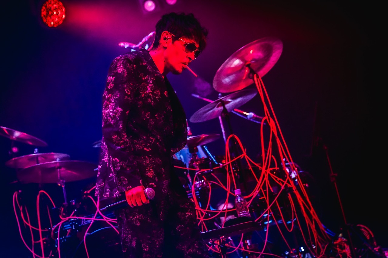 続いてSakura(gibkiy gibkiy gibkiy / Rayflower / ZIGZO)が率いる「Sakura Session~君がくれたもの~」が始まると、それまでの灼熱空間が一転。赤いシールドが絡みついた黒いドラムセットに座るSakuraのリズムをきっかけに、aie(deadman/Gt)、ミヤ、YUKKEがセッションのように音を重ね、研ぎ澄まされた緊張感が漂う。そこにボーカルを務めるKenが加わり、始まったのはSONS OF ALL PUSSYSの「I love you, I need you, I fuck you」だ。2002~2006年にKenとSakuraが組んでいた伝説的バンドの再来に、喜びの歓声が上がる。野性的なグルーヴとKenの歌声が生み出す、オトナの色気満載のロックンロールで魅了した。