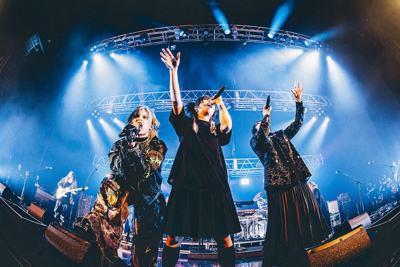 そして、千秋、Sacchan、SORAはそのままに、ギターがミヤ&aieに替わってのL’Arc-en-Ciel「浸食-lose control-」。ダークで緻密な楽曲を、ミヤとaieが音を重ねて表現していくところが興味深い。変拍子を操るSacchan&SORA、シャウトからメロディまで歌いこなす千秋の歌唱も見事だった。
