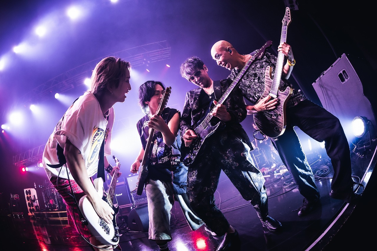ふたたびL’Arc-en-Cielの楽曲に戻り、Shou、[ kei ]、AKi、Shinyaによる「予感」へ。4人それぞれからL’Arc-en-Cielへの深いリスペクトを感じるのはもちろん、同じ時代に活動しつつもあまり交わることがなかったメンバーが並ぶ貴重なセッションだ。どんな方向性であれ、共通するルーツにL’Arc-en-Cielがあるのが面白い。