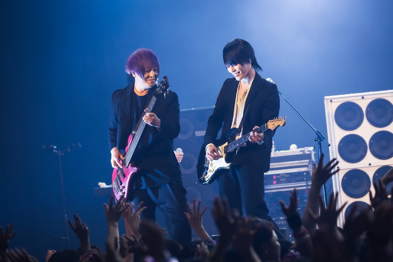 もちろんスペシャルな要素はこれだけではない。切ないミディアムナンバー「ジウ」ではMUCCからミヤが登場して力強いサウンドで背中を支え、さらに「The Inside War」の間奏でKenが登場してギターソロで華を添えたのだ。この共演は、『PARTY ZOO 2016』でも披露されたもの。若手の頃からAKiを知る先輩ふたりが、シドとして結成20周年を迎えるなど確固たる地位を築いているAKiの“今”を改めてサポートしている光景が熱い。AKiの表情からも、響き合う音からも、絆と歴史がたっぷり伝わってきた。
