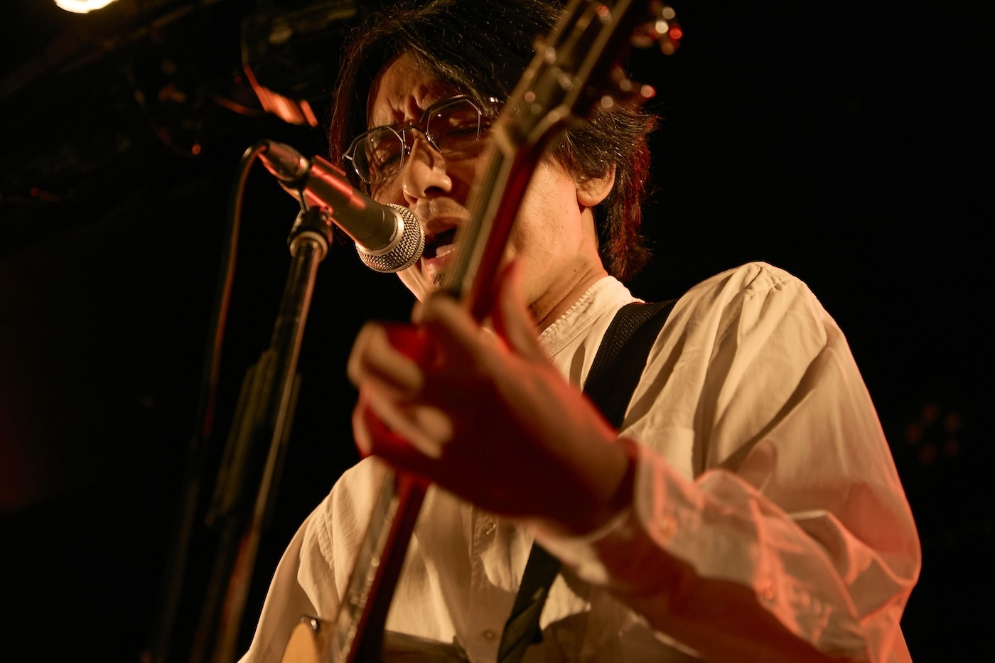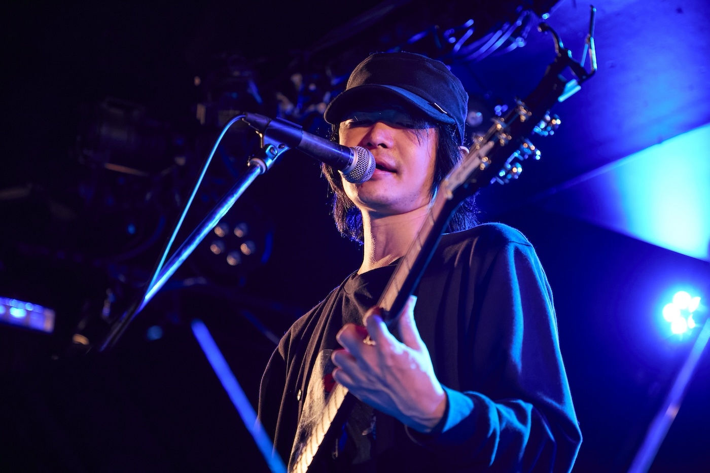 爆音の中に埋もれそうで埋もれない、イノセントな響きを持った山﨑ハイトーンボイスと小倉直也(Gt)によるハモリが切ないメロディによく合った「Beside」やエモ系の疾走感がいつの間にかスケールを拡大していく「Isolate」などバンドサウンド、ロックサウンドに真っ向からアプローチする彼の音楽性はおそらく自らのルーツや根源的なところでグッとくる音に忠実な造りとなっているのだろう。そのせいか、リズムに合わせて一斉に手が上がったりする盛り上がりとは一線を画し、場内の一人ひとりがじっくりと噛み締めながら内なる熱をじわじわと滾らせていく様子がよくわかる。一段階テンションを上げたパワーポップ系の「Empty Place」からザクッとした触感が心地よい「Reasons」へと繋いでライブは終了。LOW IQ 01繋がりでもある先輩・フルカワユタカと木下理樹(ART-SCHOOL)による弾き語りデュオへとバトンを繋いだ。