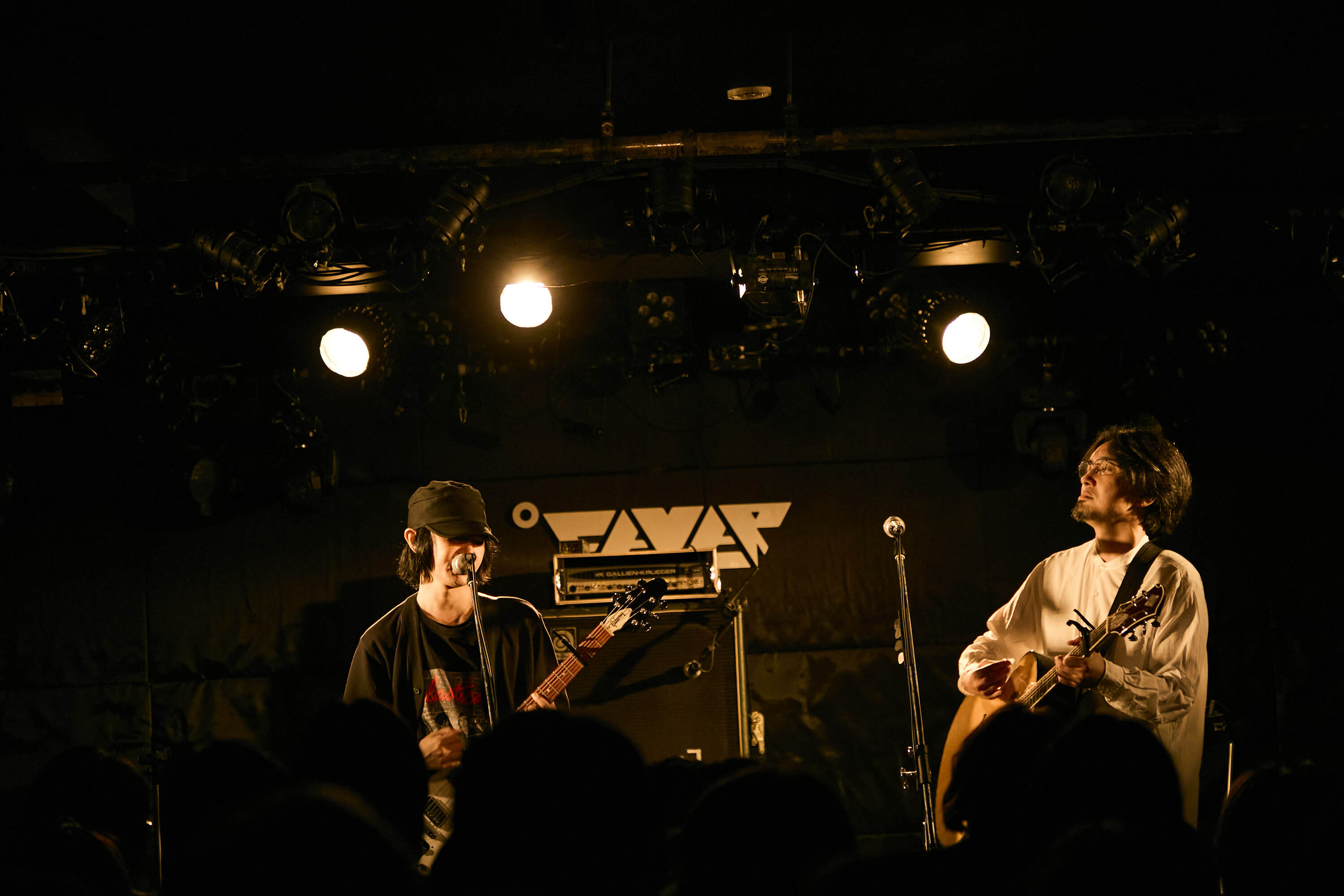 ただ、ひとたび歌と演奏が始まれば空気は一変。どちらかといえば平易な歌い方なのに、そこへ思い切り情感とメランコリーの乗る木下の歌声でたちまち引き込んでいった。「SWAN DIVE」「OK & GO」と、淡々としつつも風景や心情をしっかり浮かび上がらせる、なんだかロードムービーみたいな歌が続く。「アッパーな曲を」と紹介された「Just Kids」ではフルカワの抑揚をつけたギタープレイがエモーションを増幅させ、「14souls」ではハモリやボーカルの掛け合いも交えた軽快な演奏を展開していく。「俺はお前(木下)さえ笑ってくれればいいと思って喋ってる。お前にはわらっててほしいよ」(フルカワ)という、前後の流れを省けば極めて感動的なMCが拍手喝采を巻き起こしたところで、ラストは「2人の友達の曲」としてフジファブリックの「バウムクーヘン」。ちょっぴり切ない余韻を残してステージを後にした。
