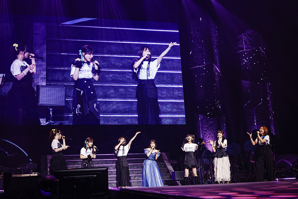 ここでfripSideの3人がハケ、続けて南條愛乃ソロの流れになるのだが、ステージを後にする八木沼に「あ、どうもお久しぶりです。お気をつけて……。」と声をかける南條のゆる~い感じに、実家のような安心感を覚える。「アニサマ、もう何年ぶりかわからない! 最後に出演したのはfripSideとして出た2017年ぶりです。ソロは2015年ぶりだから、もう9年越しです! そんな私も御年40になりました。演奏は引き続きfripバンドの皆さんで……あ、どうも久しぶり!」と、自由すぎるトークの後にはグリザイアメドレーとして「サヨナラの惑星」「涙流るるまま」の2曲をしっとりと歌い上げた。